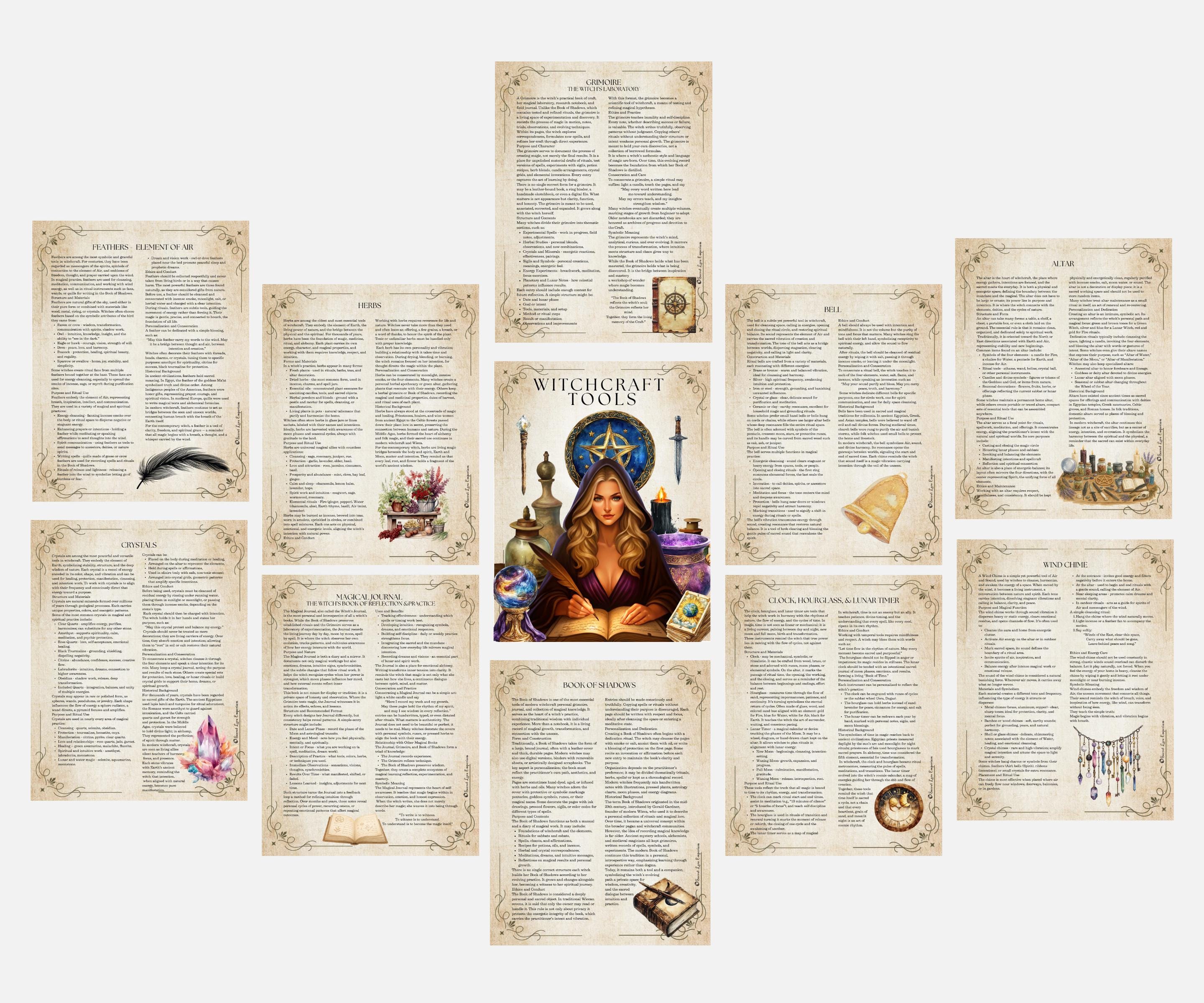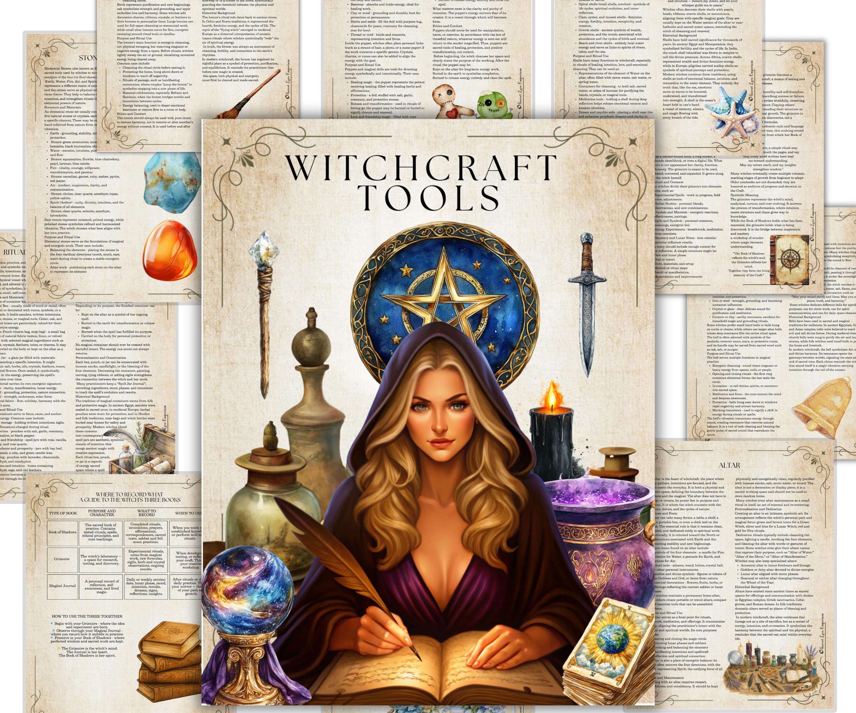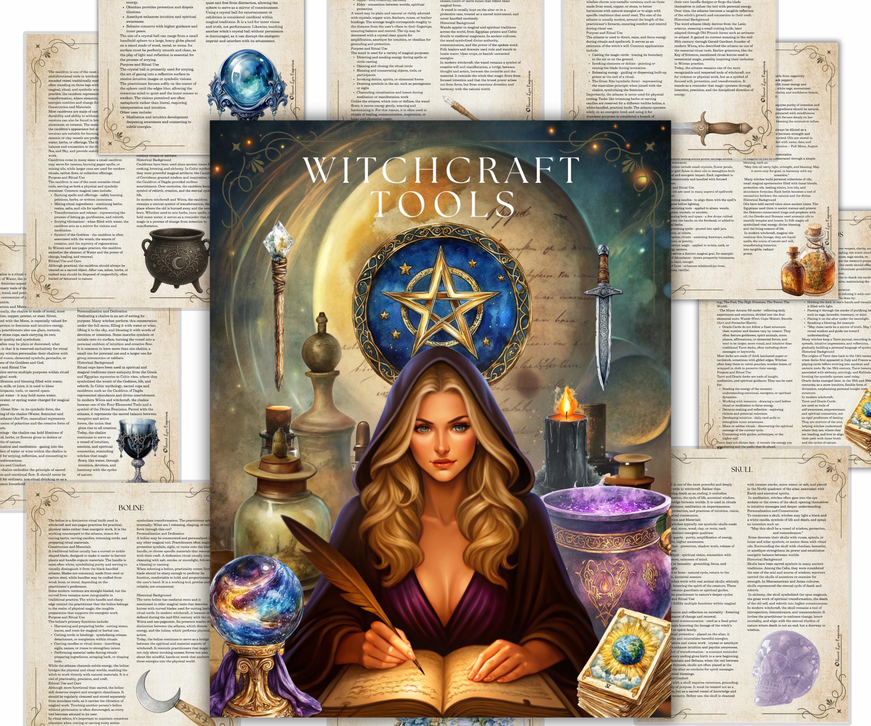 ✨ WITCHCRAFT TOOLS is an illustrated guide to every witch's magical tools – from the athame and chalice to the censer, mirrors, and pentacle. This unique, printable PDF file contains 52 - A4 pages that you can add to your grimoire, Book of Shadows, or magical journal.