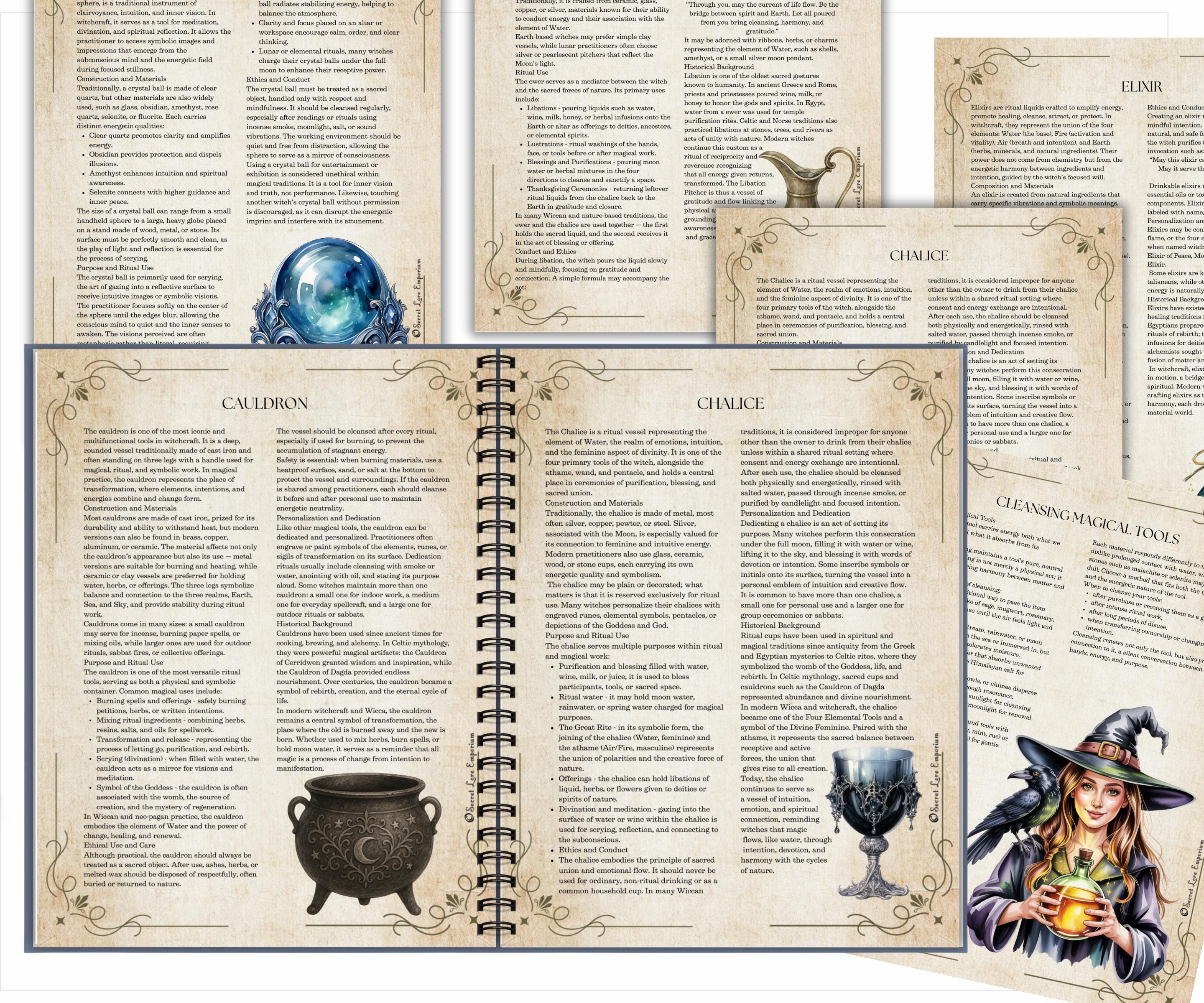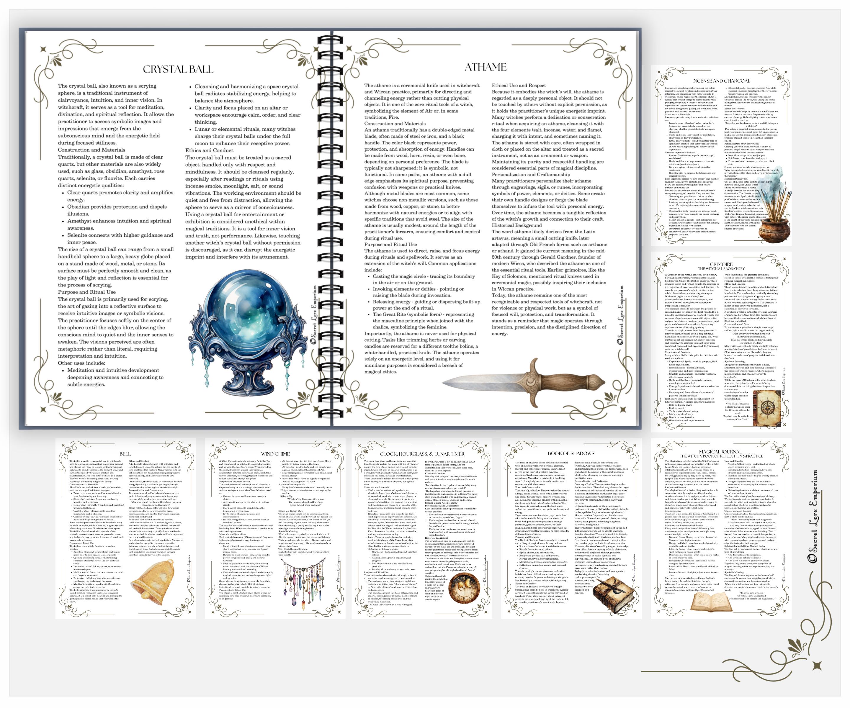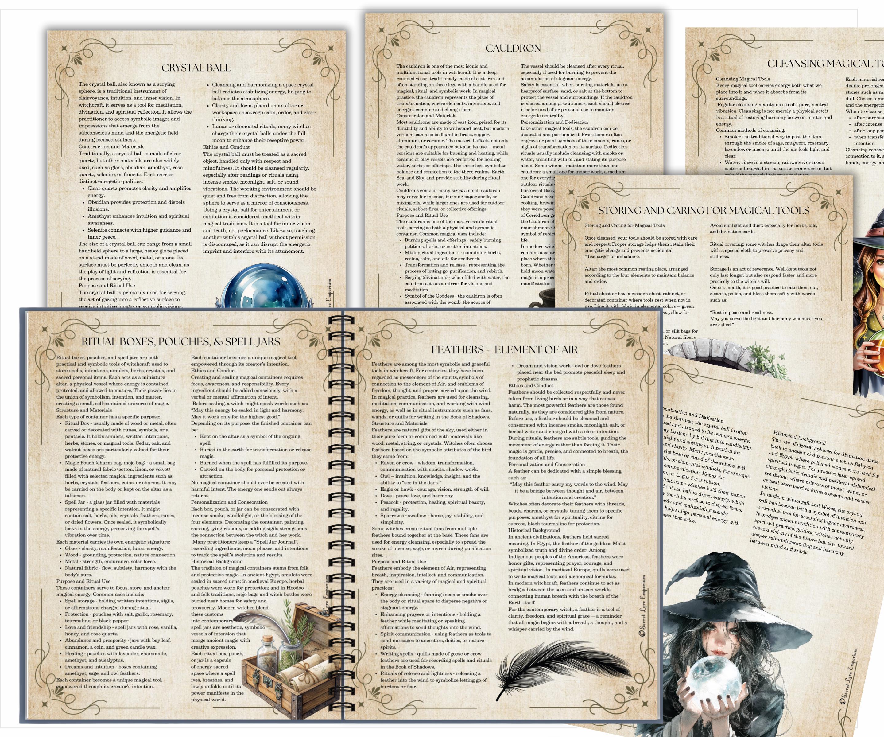 🕯️ Each page contains an in-depth description of a specific ritual tool – its symbolism, uses, history, storage, cleansing, and personalization.