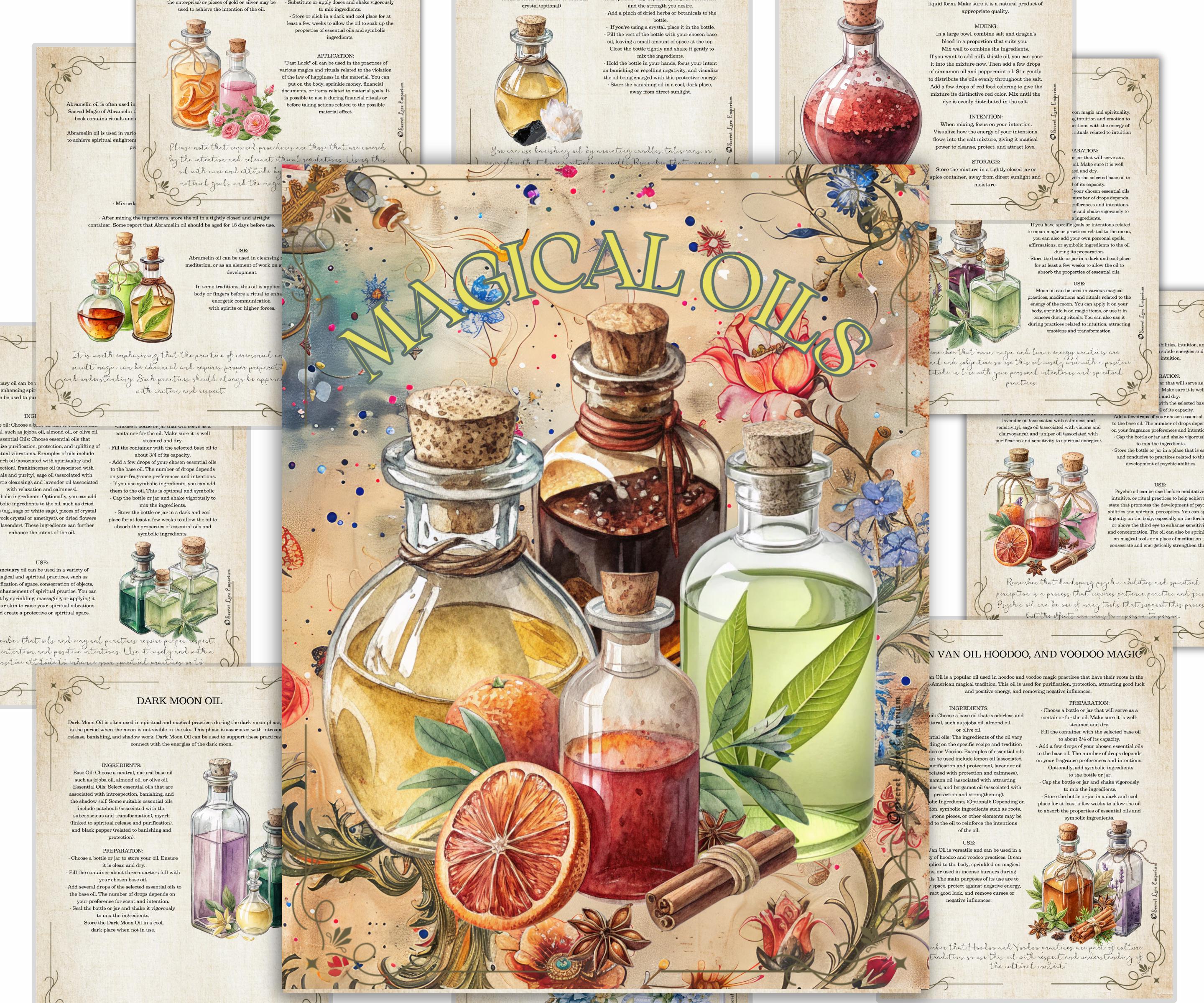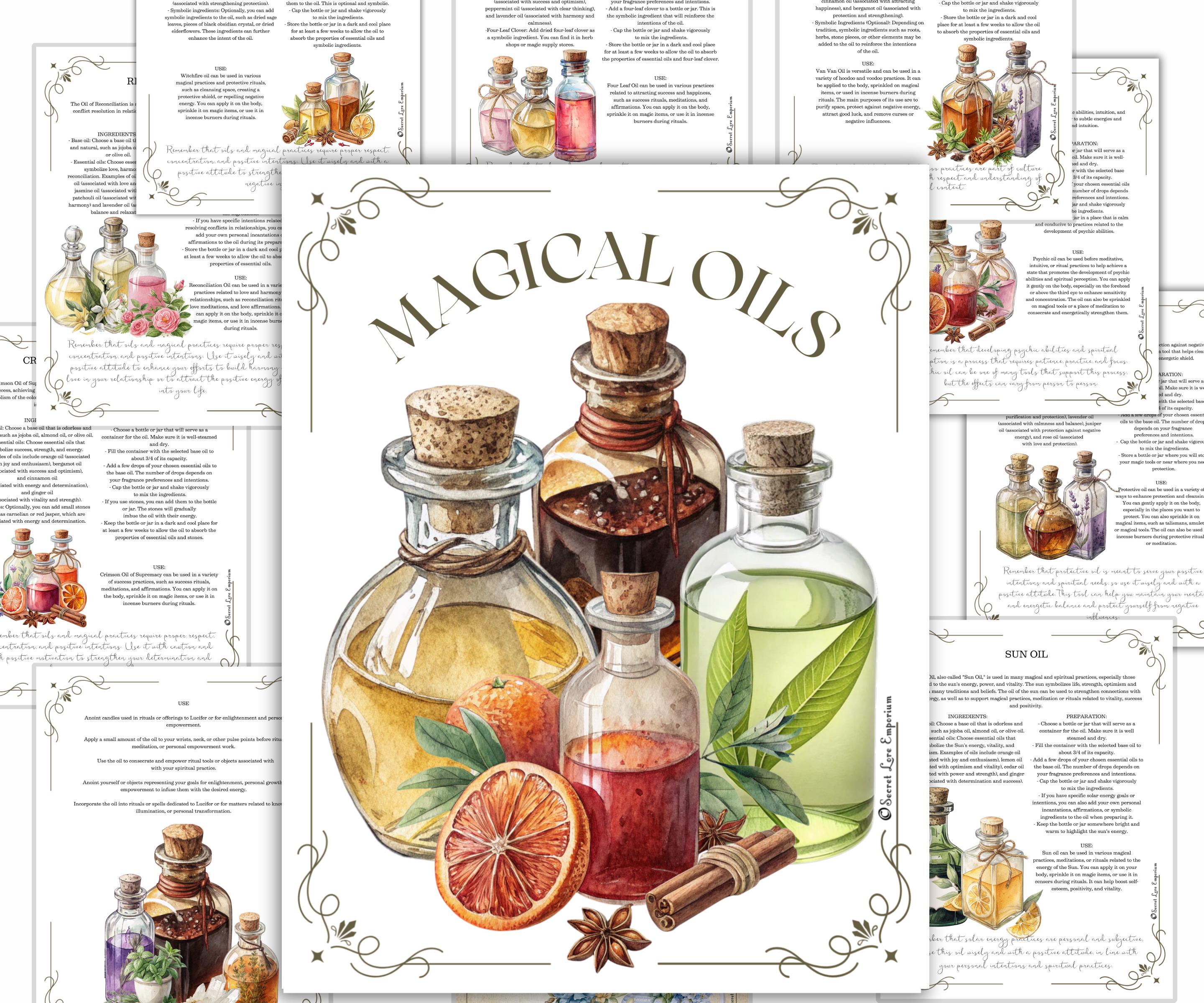 A complete guide to 30 powerful magical oils, each with ingredients, preparation, and usage instructions: