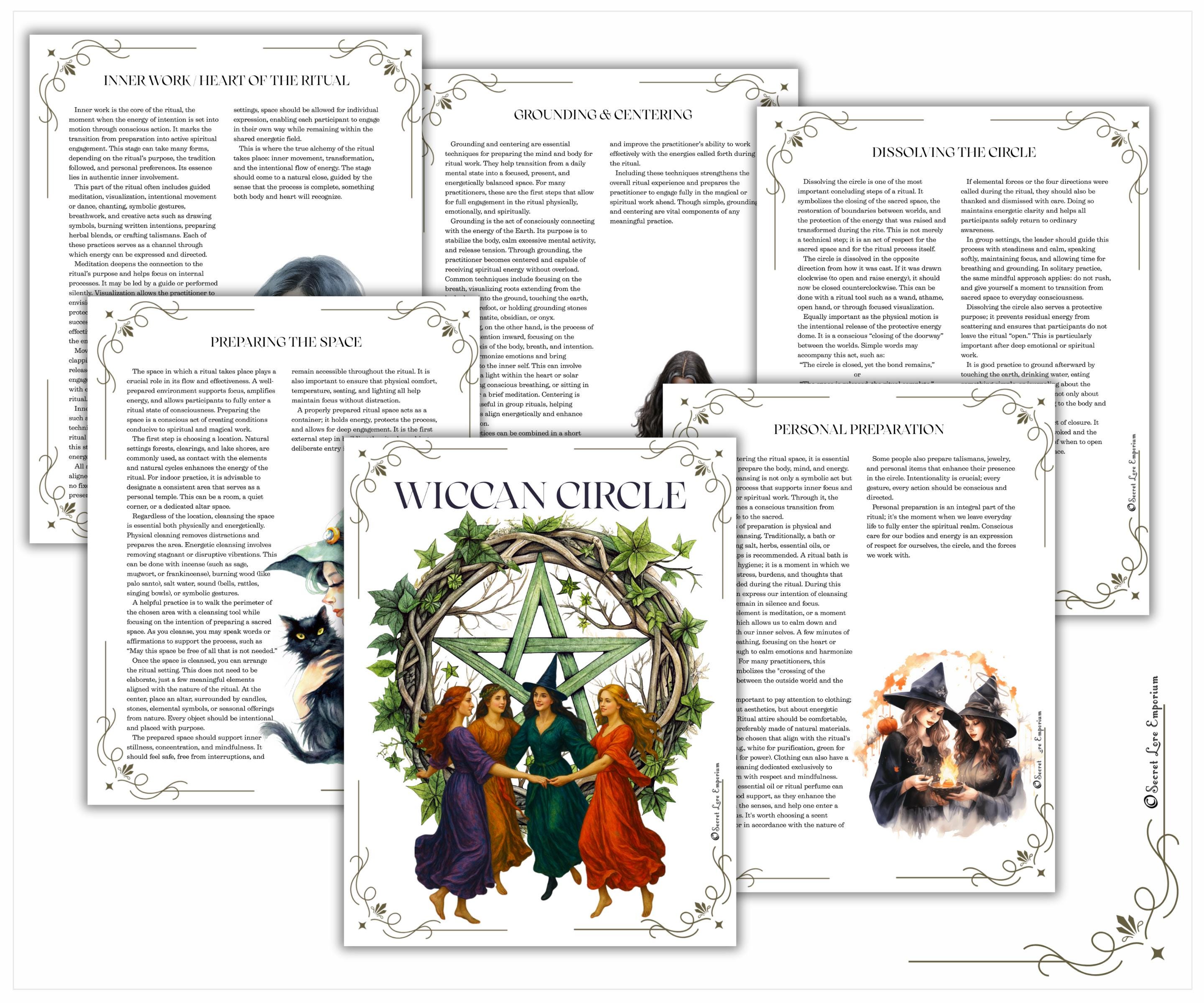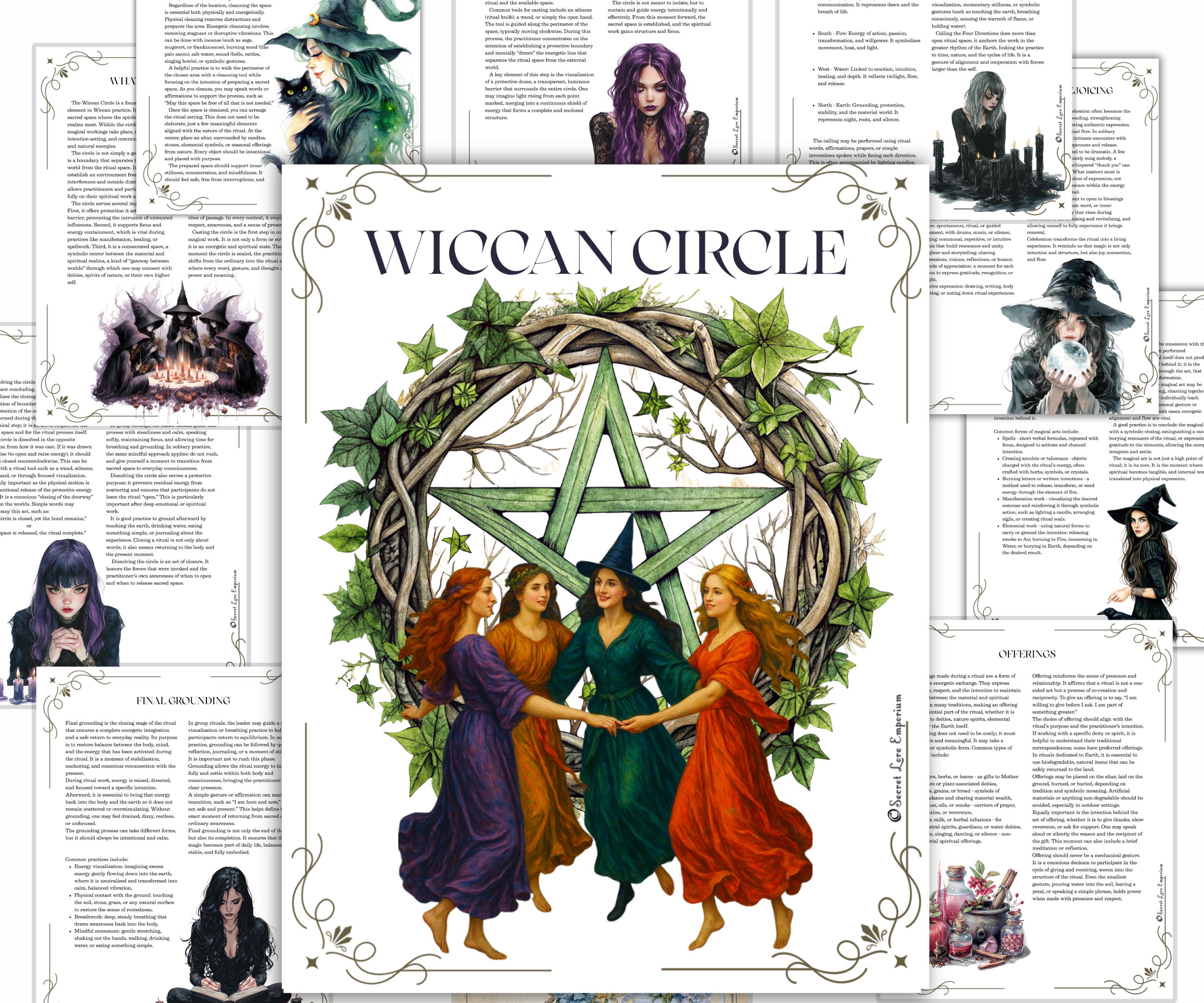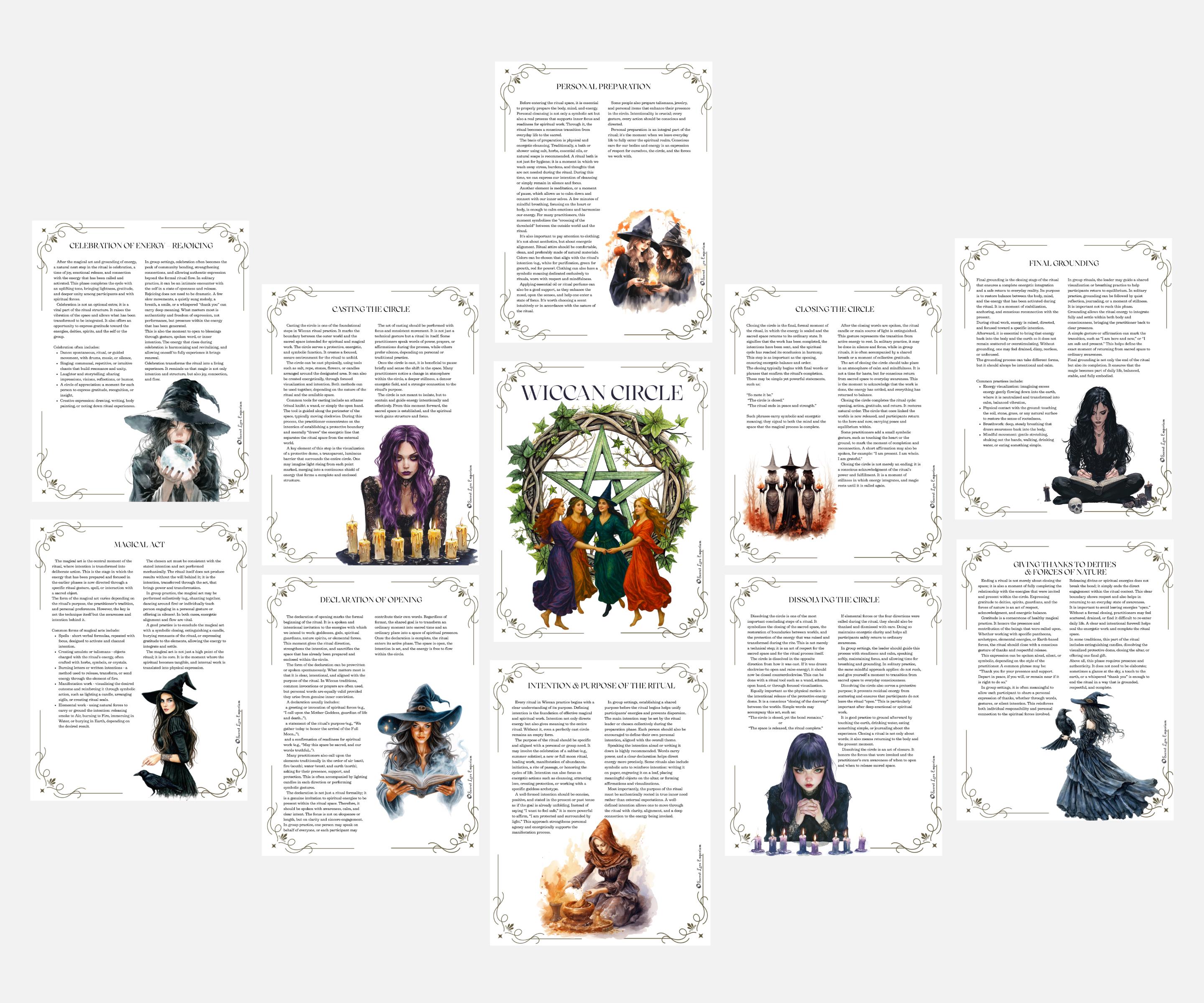 Inside you’ll find an in-depth exploration of the Wiccan Circle: how to create, open, bless, and close a sacred space with intention and protection. Each page is carefully written in a clear, spiritual tone – practical, informative, and ideal for modern witchcraft practice.