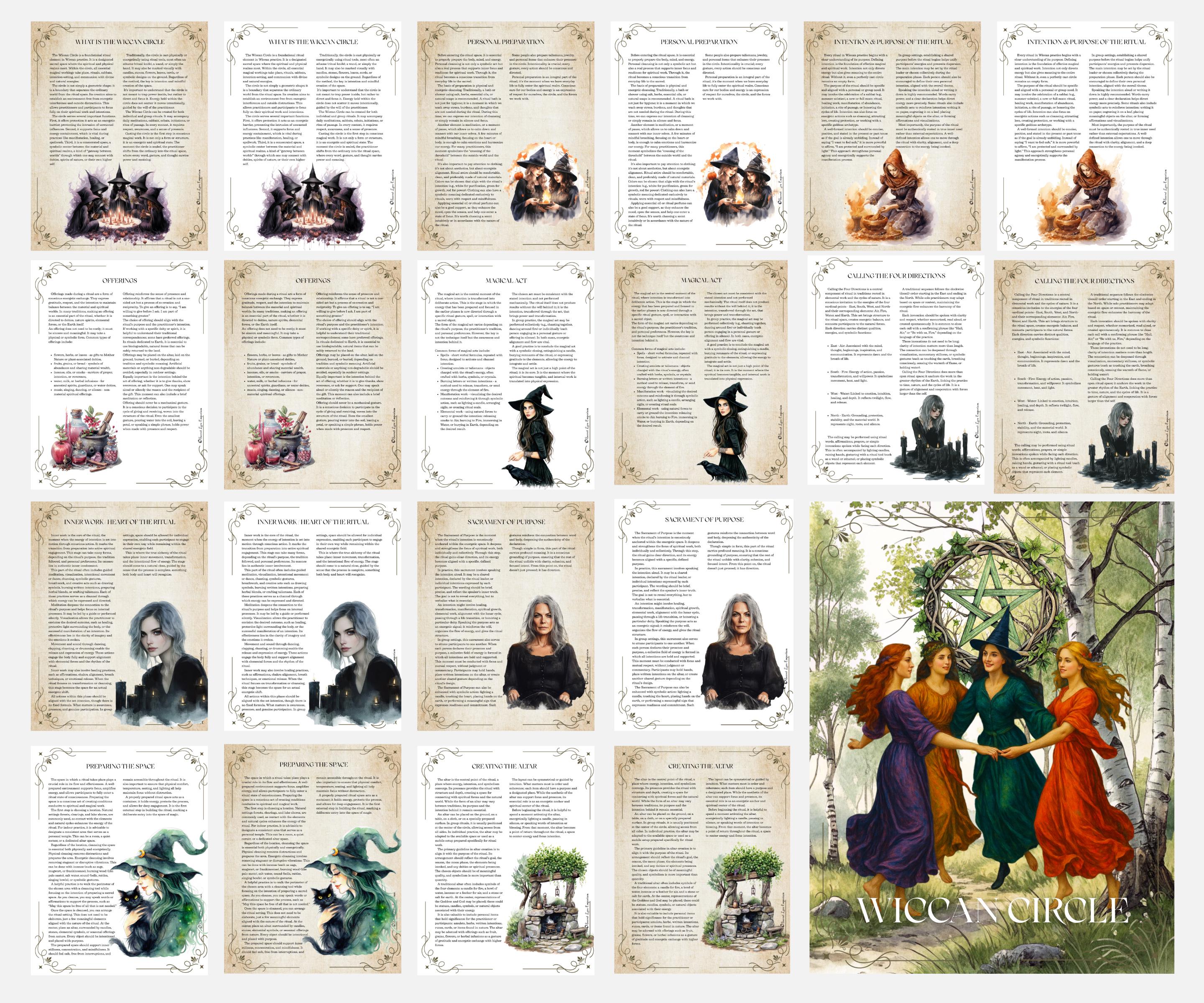 Wiccan Circle Printable Grimoire Pages — a complete 21-page Witchcraft Ritual Guide designed for your Book of Shadows, Witch Journal, or Wicca altar work. This printable A4 collection includes detailed ritual steps, sacred circle instructions, and spiritual guidance for witches, priestesses, and energy practitioners. Perfect for Sabbat celebrations, moon rituals, and coven gatherings.