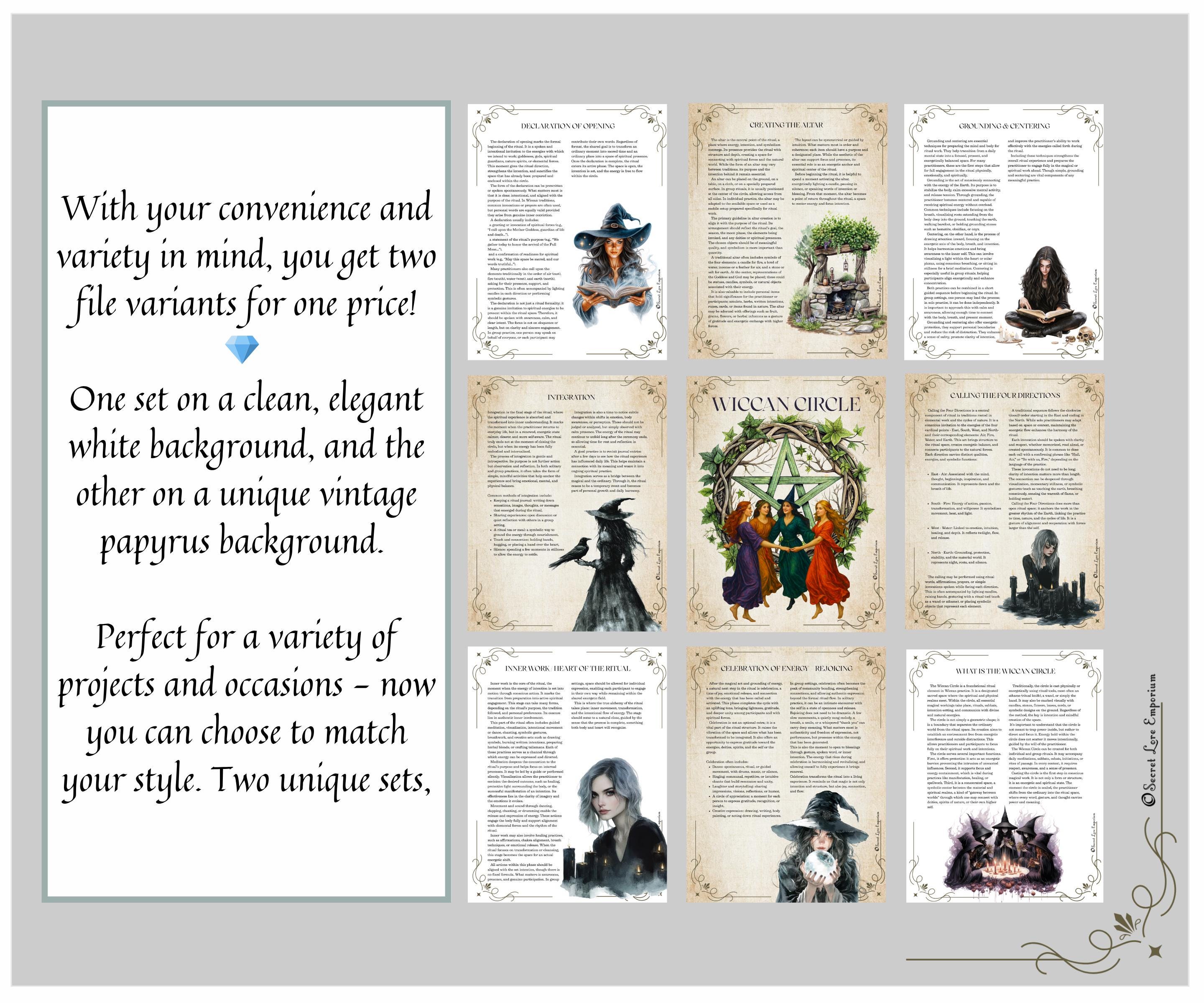 This collection merges visual beauty with authentic Wiccan knowledge. It’s not just decoration — it’s a practical spiritual tool for deepening your craft, aligning rituals, and bringing sacred structure to your magical practice.