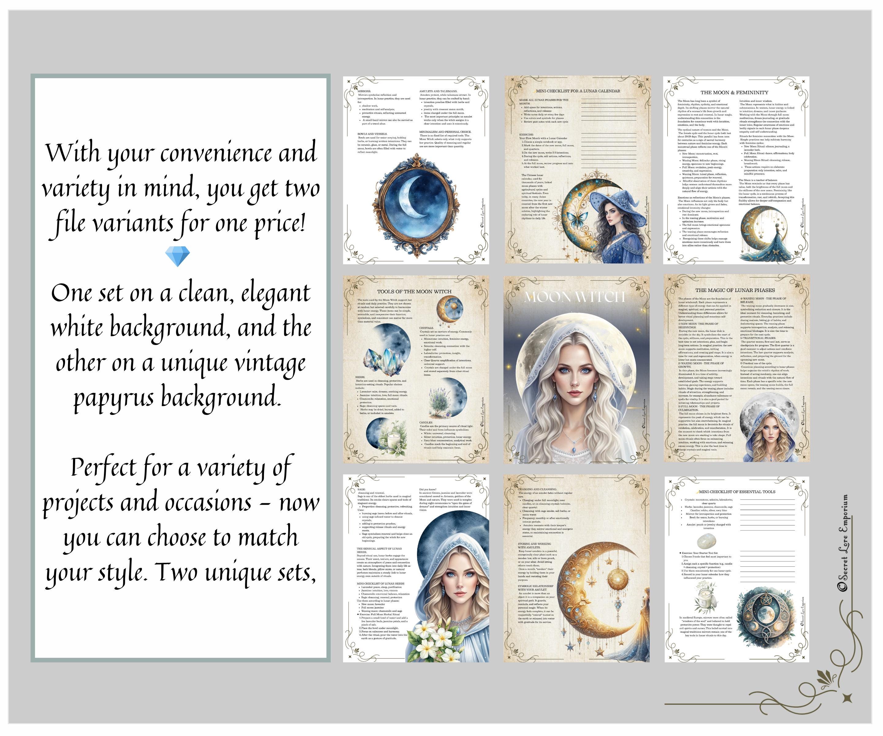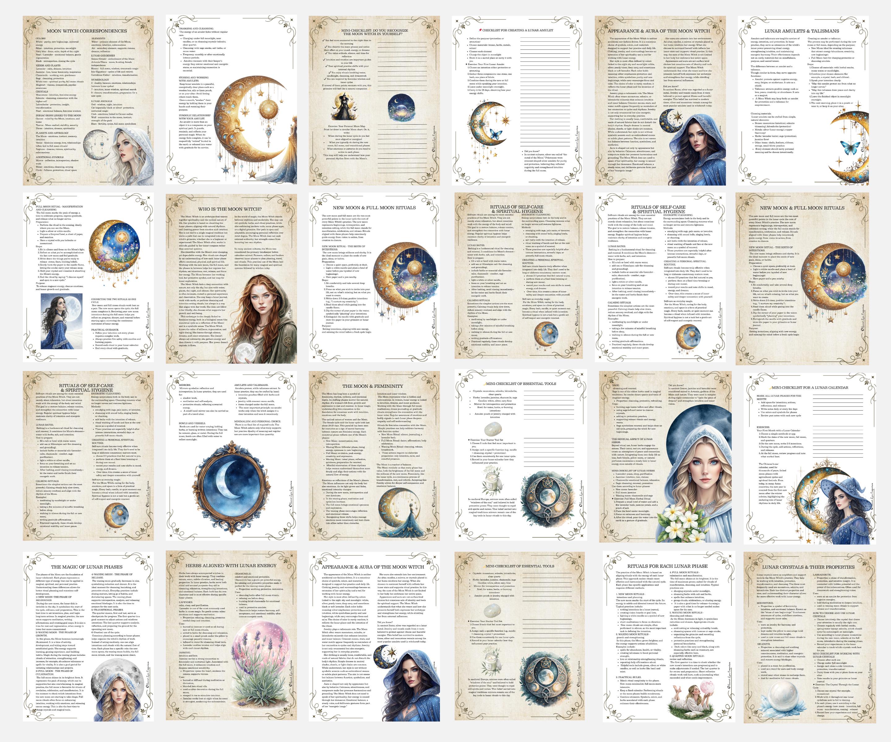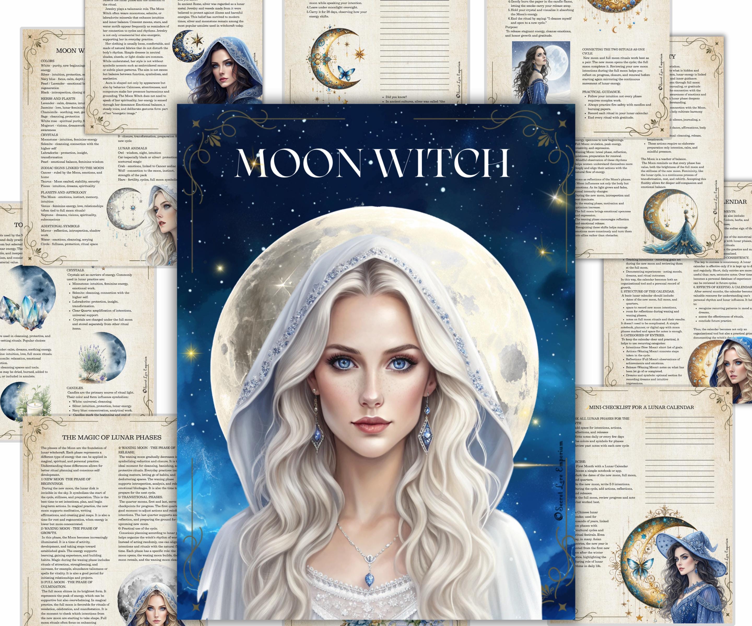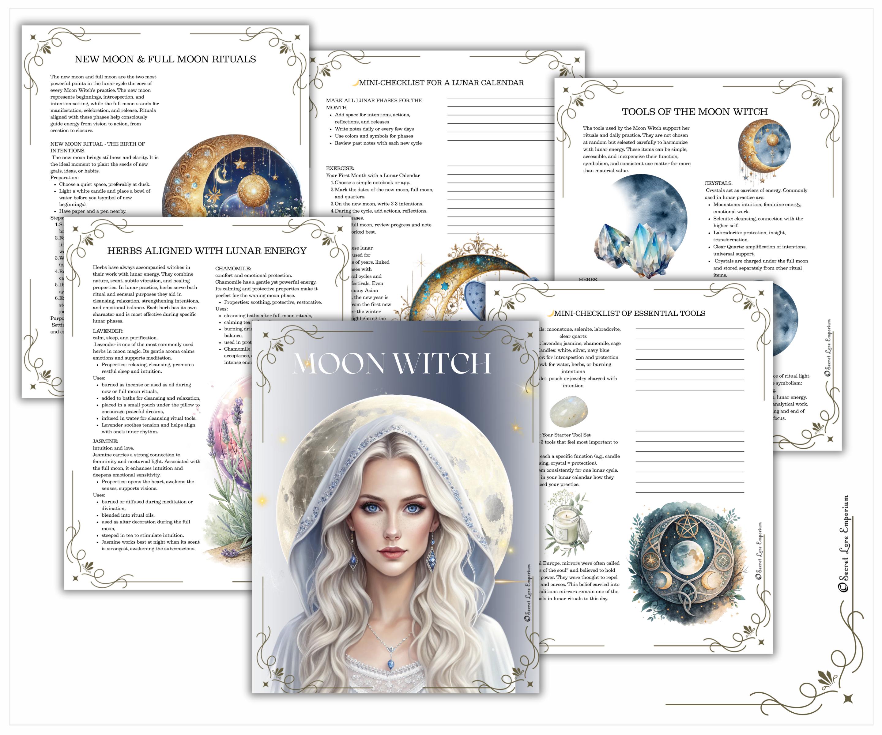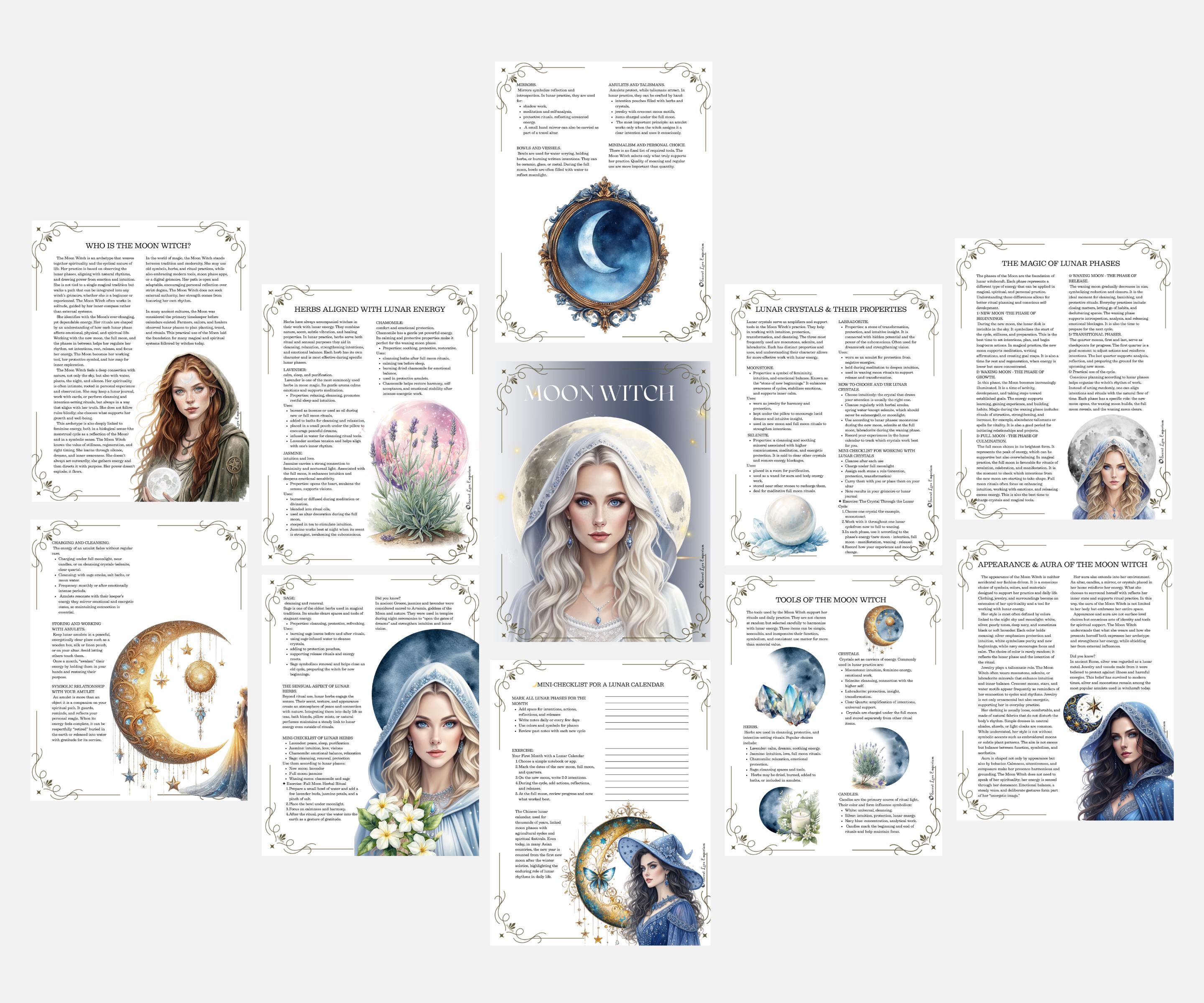 This 23-page, printable Moon Witch's Grimoire is a comprehensive guide to lunar spirituality, rituals, and magical practices. Perfect for modern witches, nature lovers, and women who desire to live in harmony with the Moon.