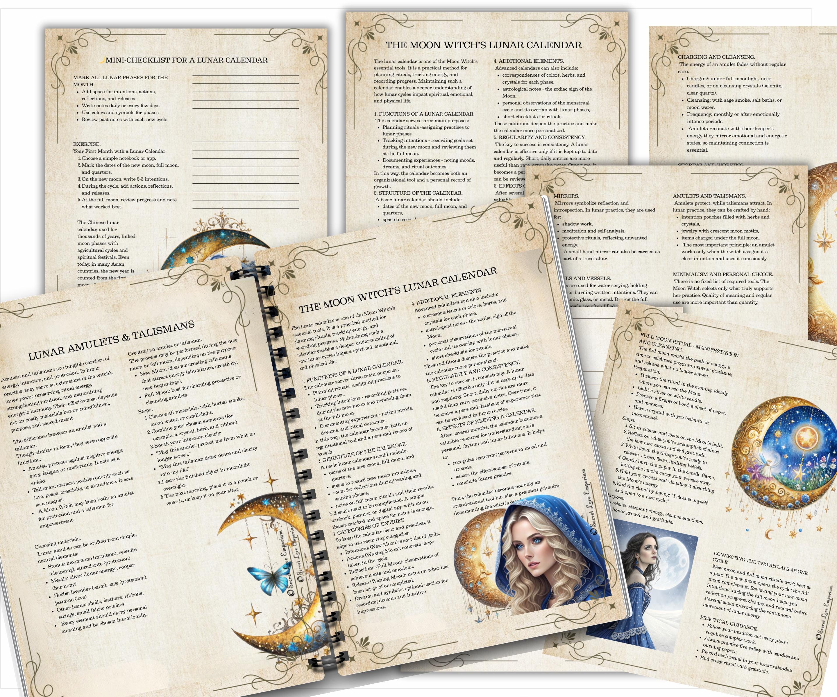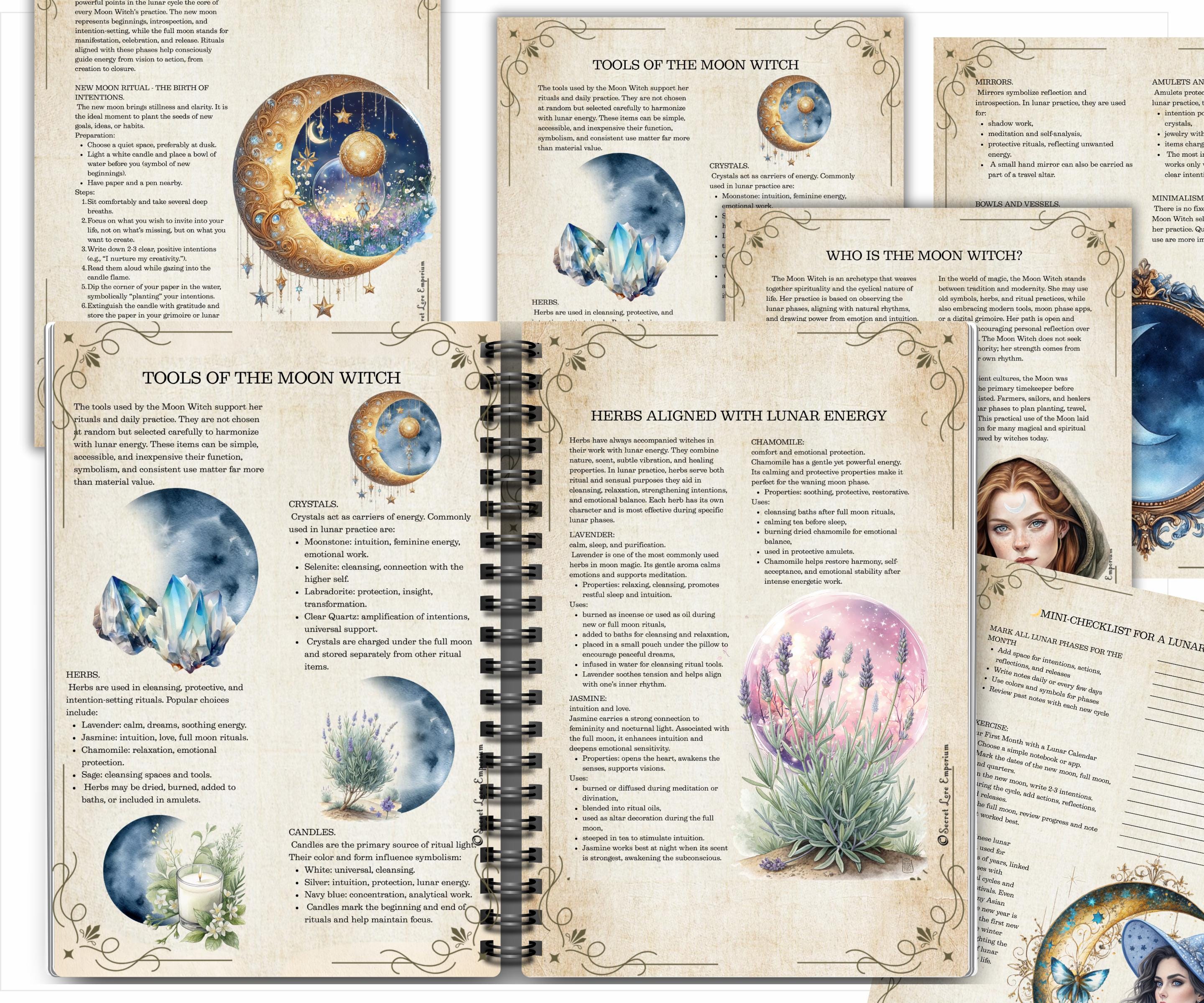You'll find everything here: new and full moon rituals, lunar phases, lunar affirmations, herbs, crystals, amulets, spells, sleep rituals, and energy work – all described in a methodical, practical, and beautiful way.