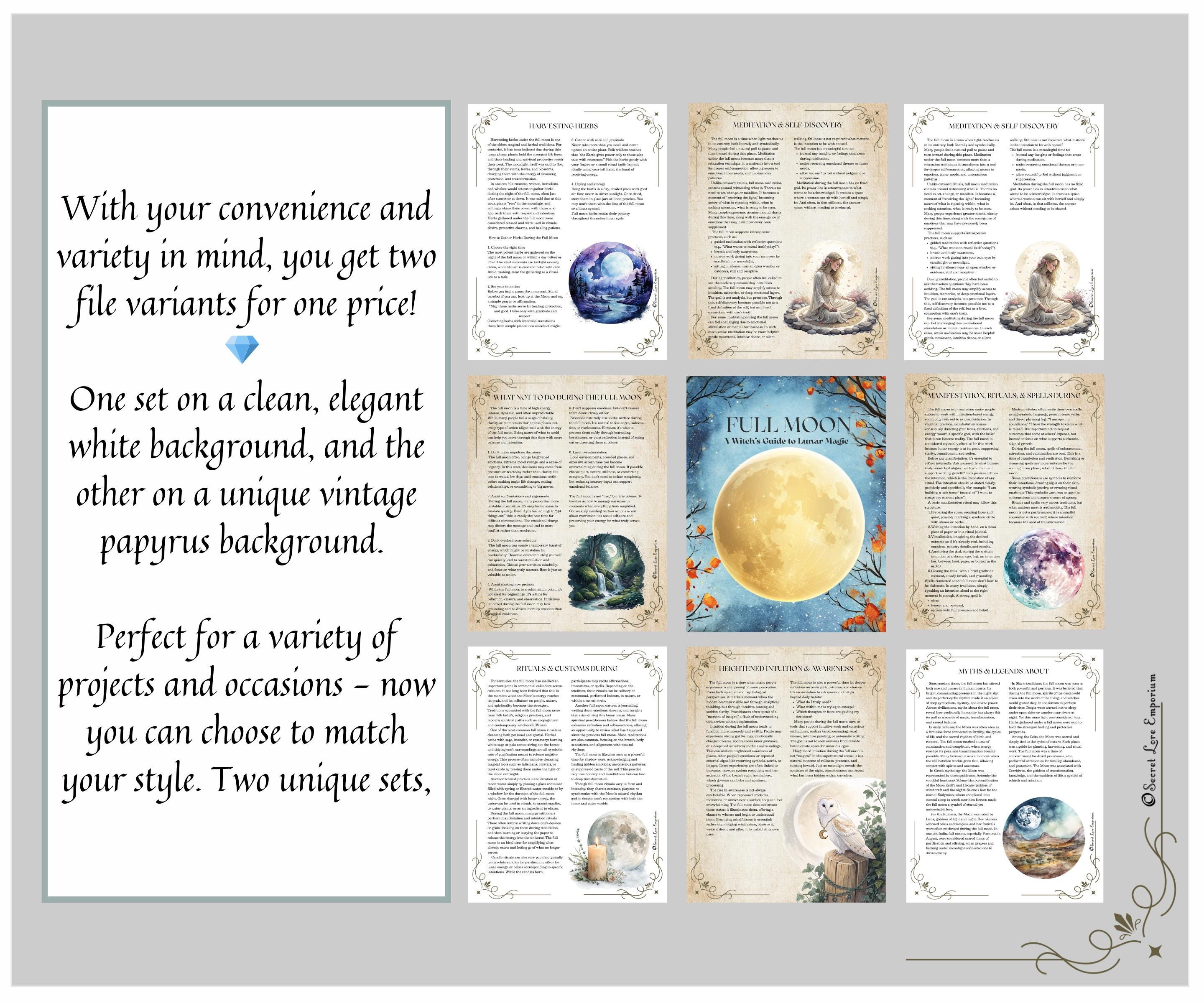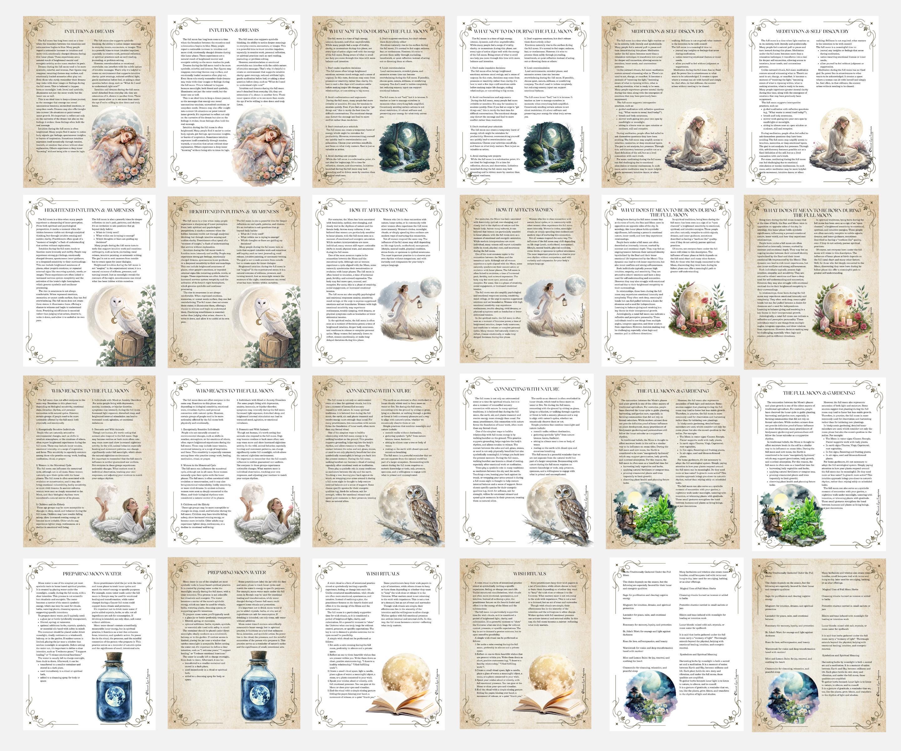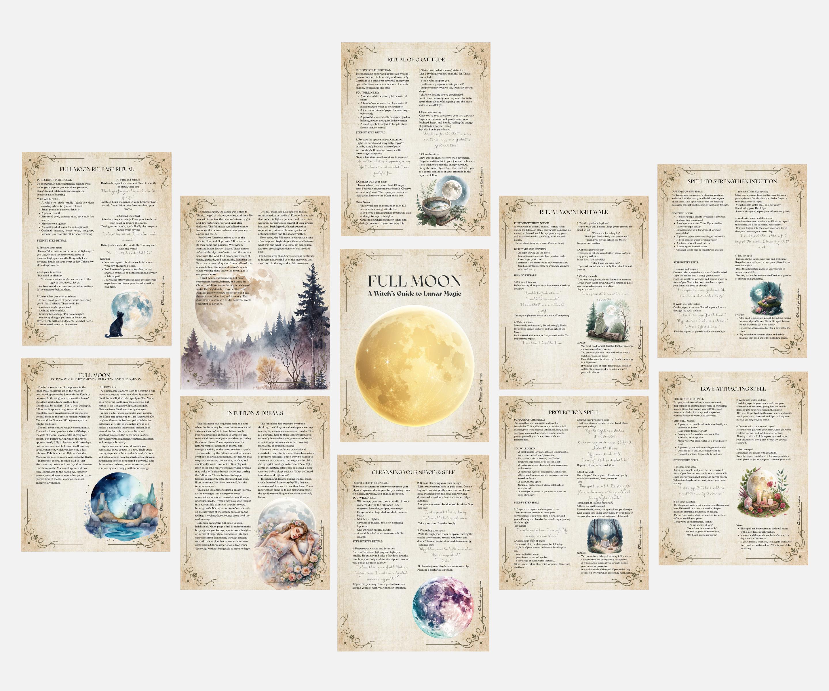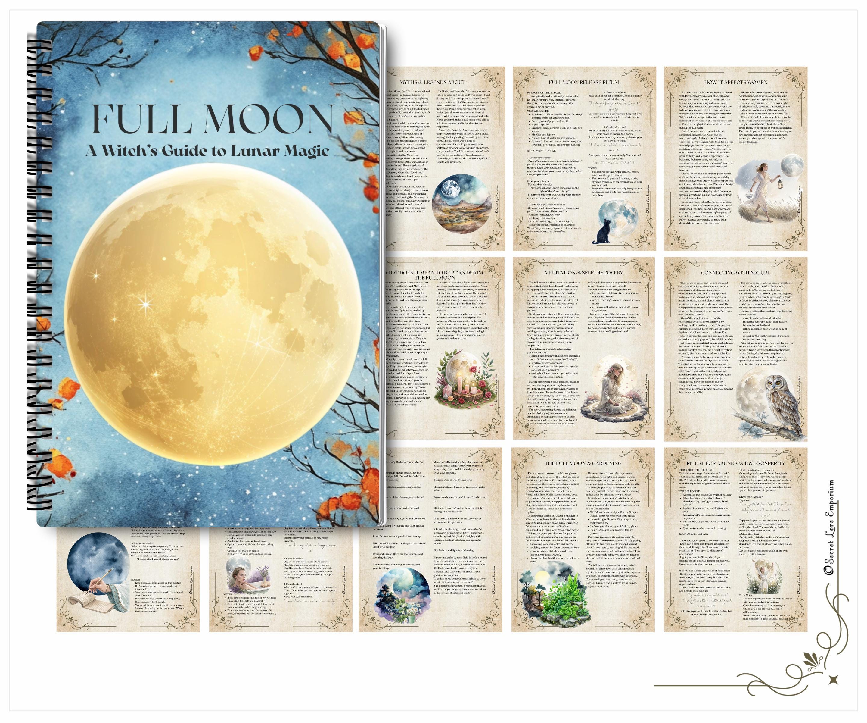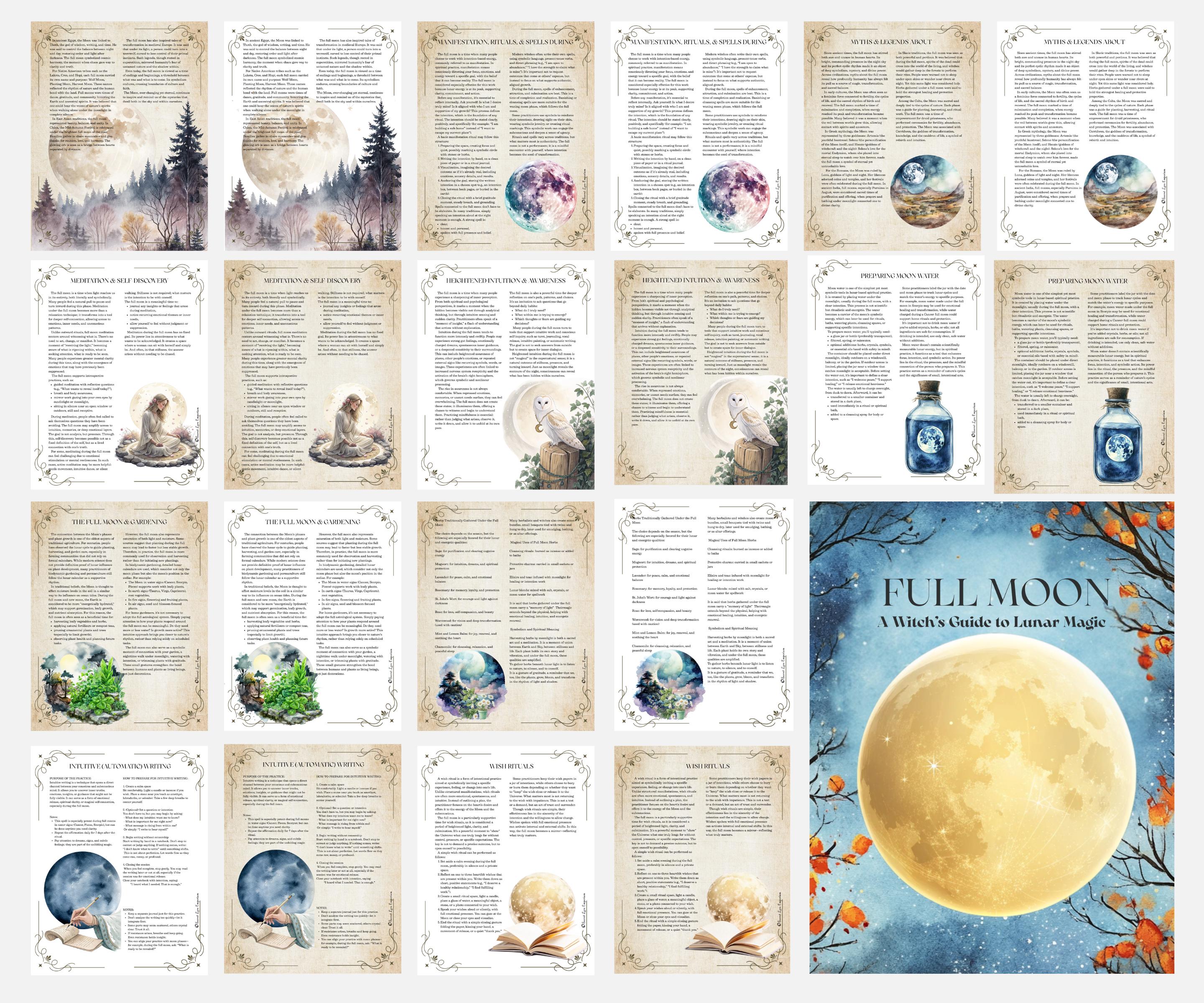 Inside, you’ll find everything you need for your moonlit practice: full moon rituals, cleansing and manifestation spells, moon water recipes, herbal correspondences, shadow work, meditations, and intuitive journaling prompts – all presented with balance, depth, and beauty.