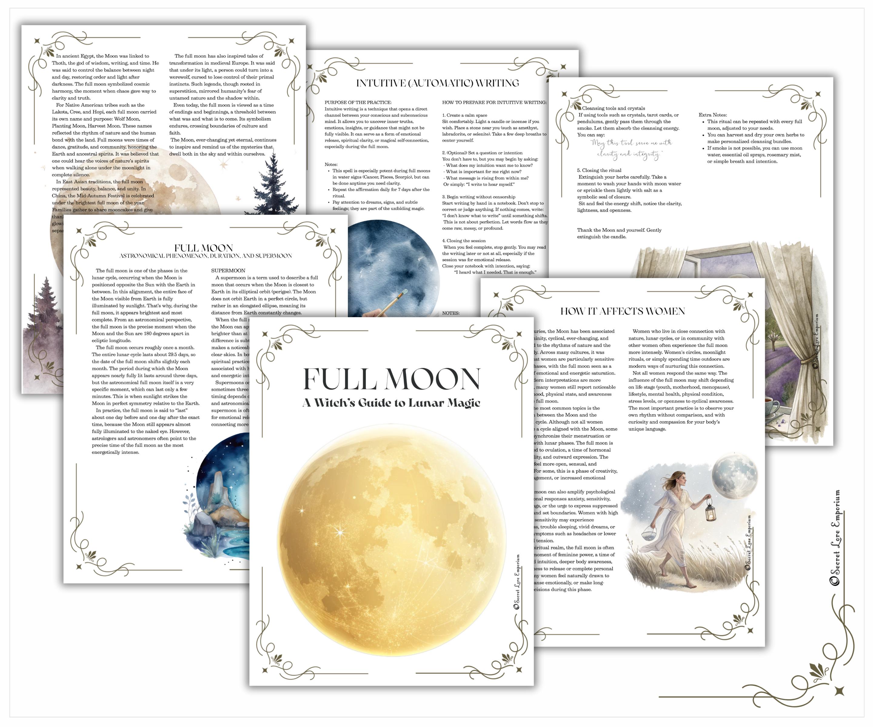 This Full Moon Grimoire will guide you through rituals, reflections, and sacred practices under the moonlight – helping you reconnect with intuition, nature, and the cycles of your own soul.
