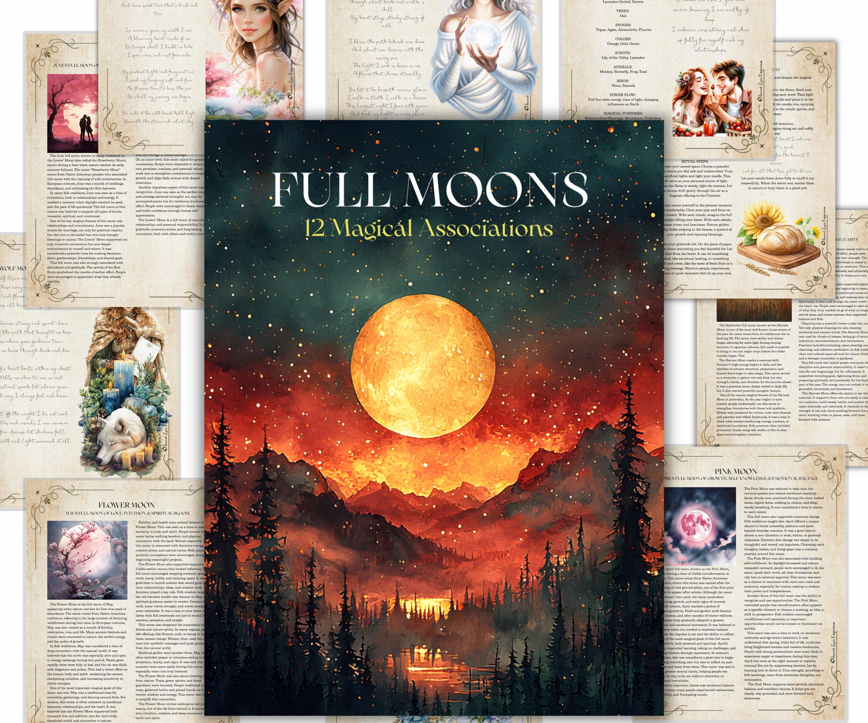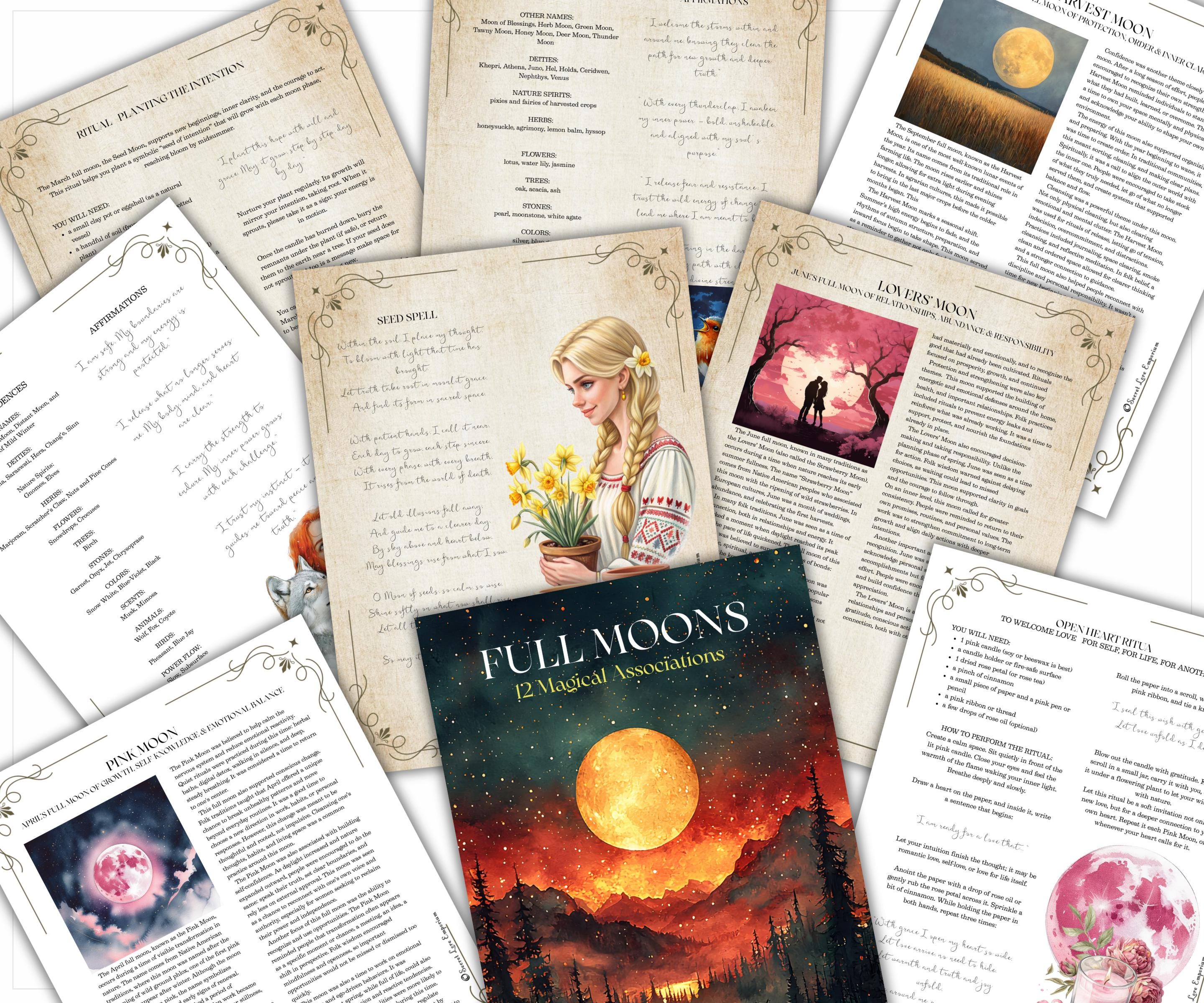 Whether you're a modern witch, moon lover, or spiritual soul walking in tune with nature — this grimoire invites you to celebrate the energy of every full moon with sacred practice, insight, and devotion.