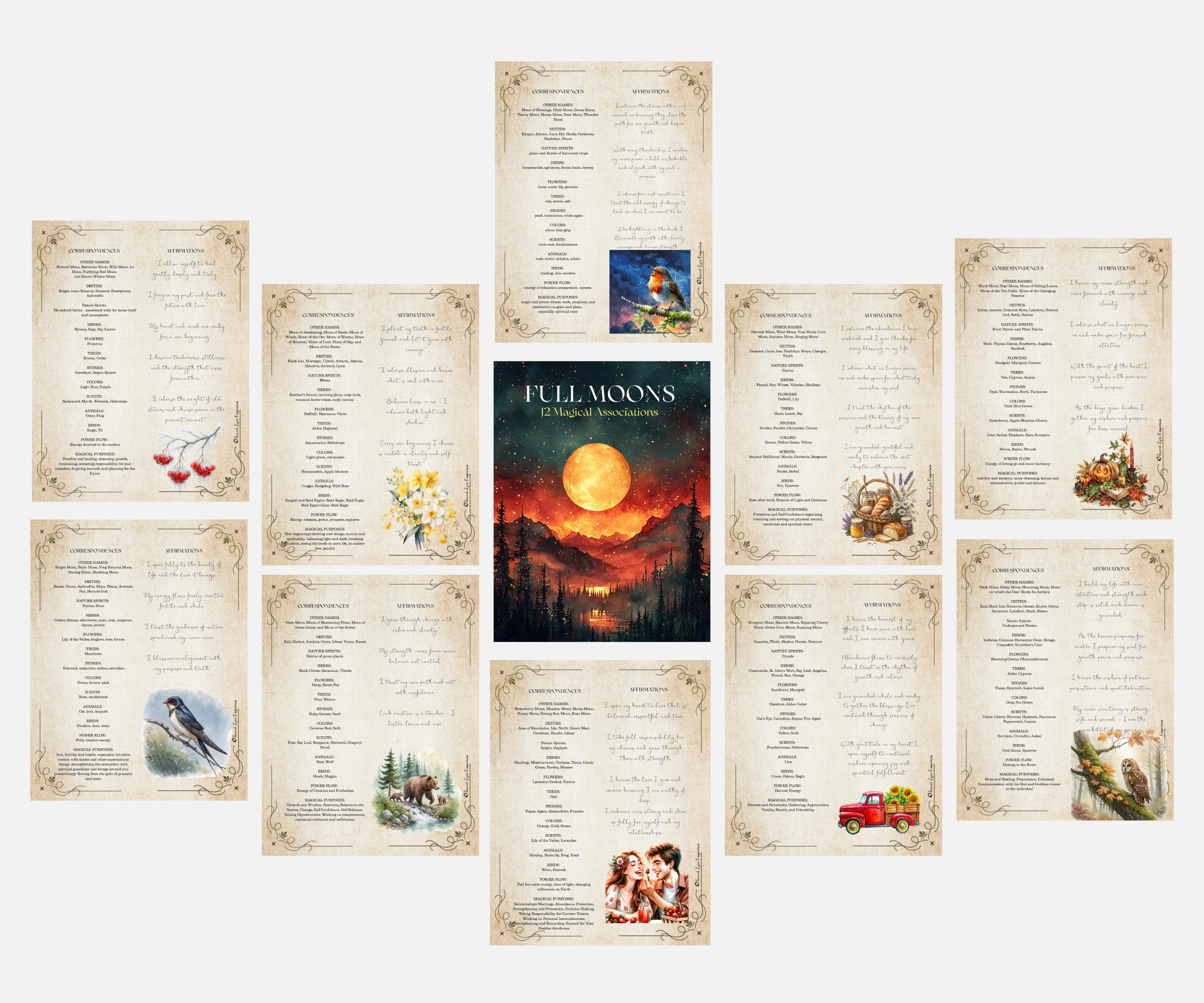 – 48 powerful affirmations (4 per Full Moon), crafted to support your emotional and spiritual alignment