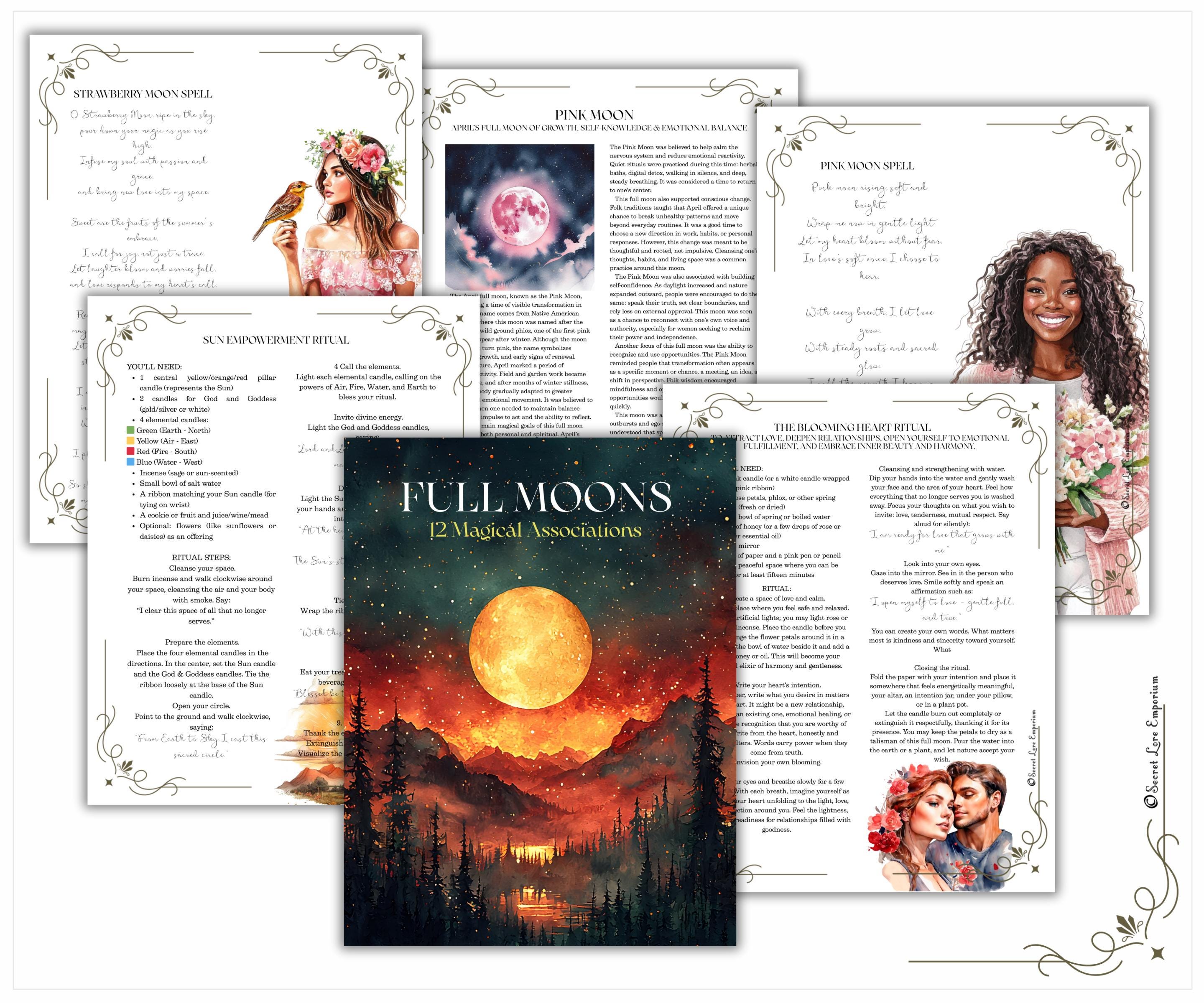 – 12 unique lunar rituals, tailored to each month’s Full Moon theme (love, healing, growth, release, abundance...)