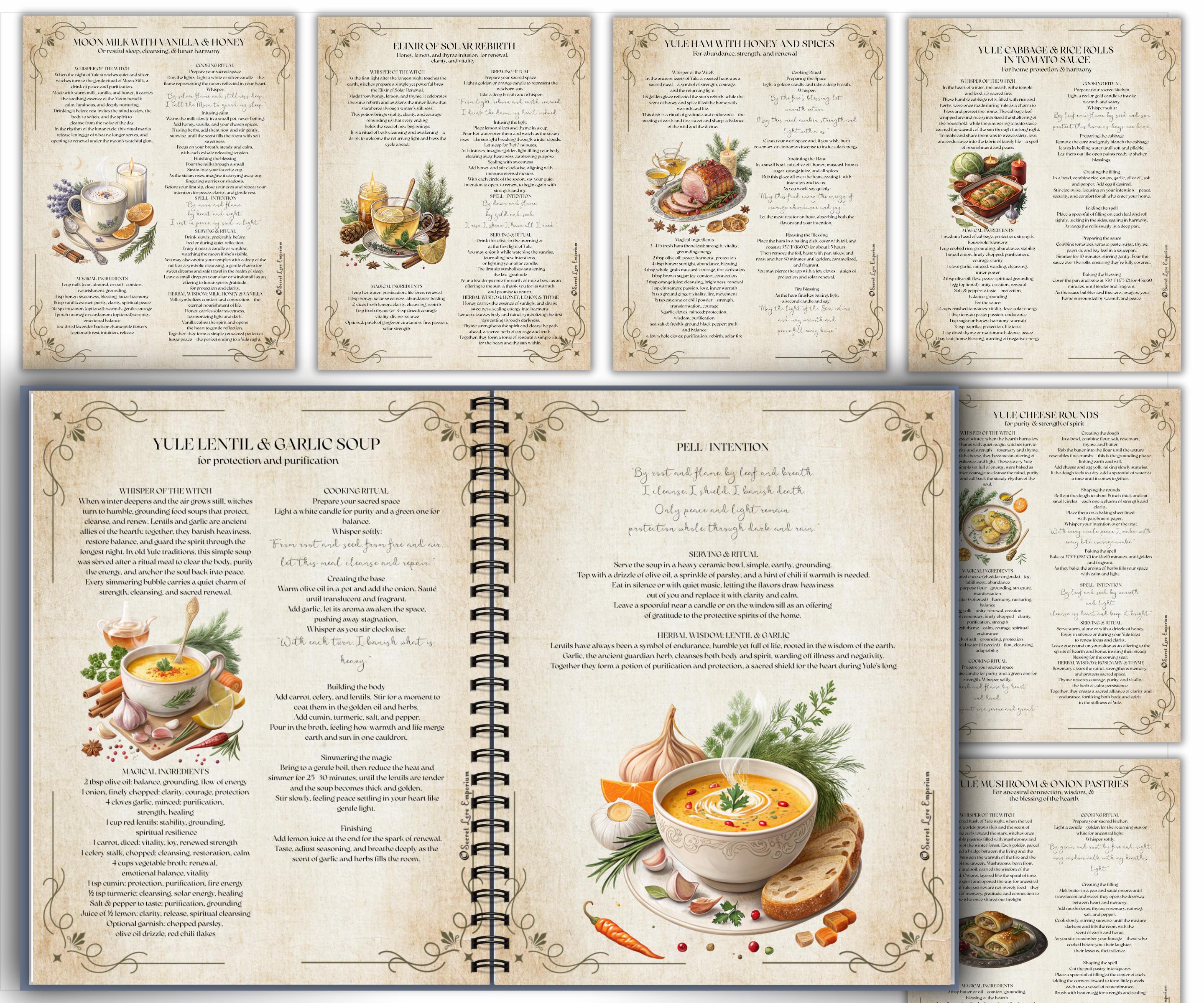 Each recipe includes: โ Full ingredient list and method โ Magical correspondences of ingredients โ Mini ritual to perform while cooking โ Affirmation or short spell to bless your food