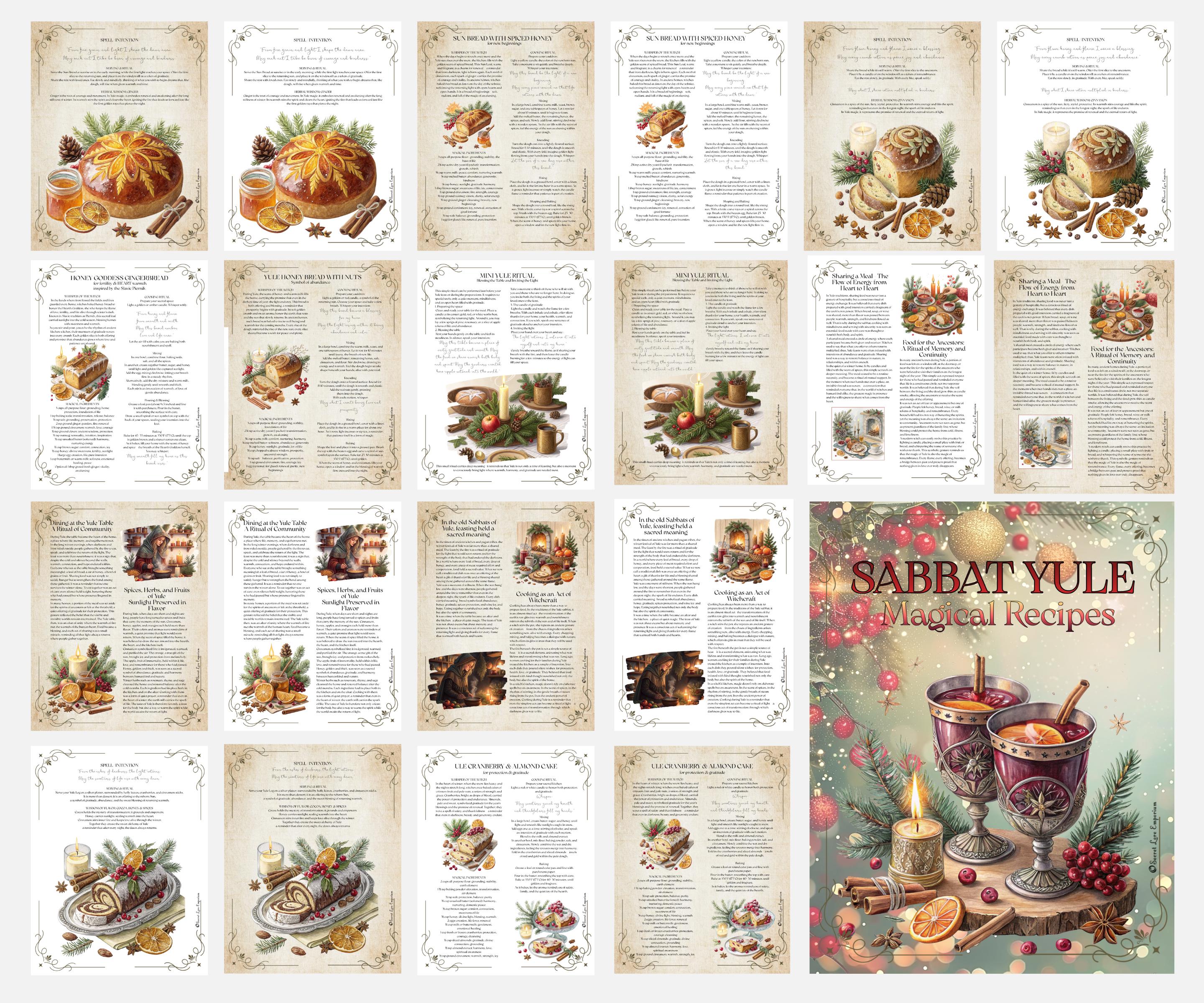 Step into the spirit of the winter feast with 61 unique recipes infused with magic, tradition, and intention โ each crafted to align with the sacred energies of Yule. Youโll find a beautiful mix of sweet, savory, and ritual dishes, such as: