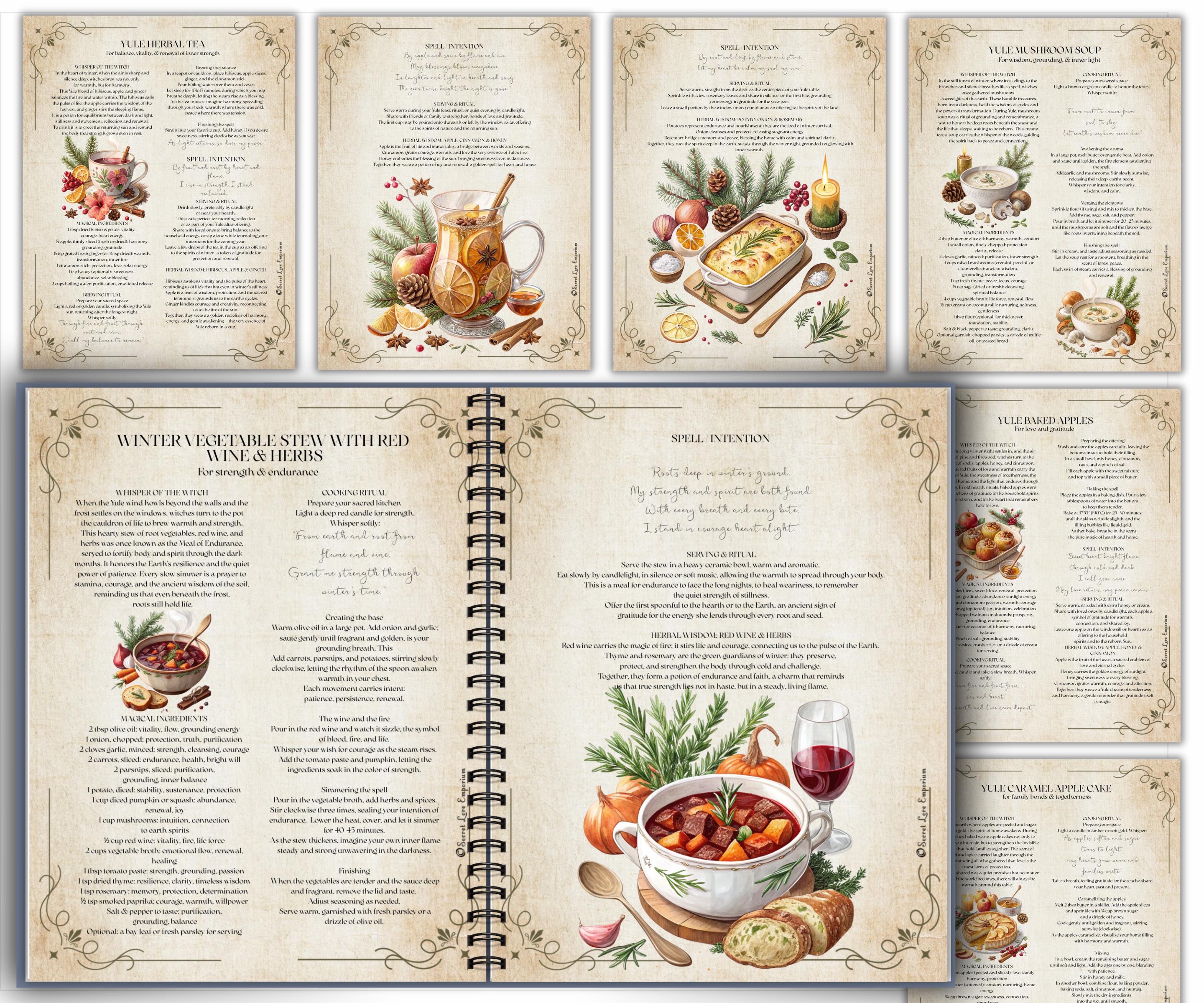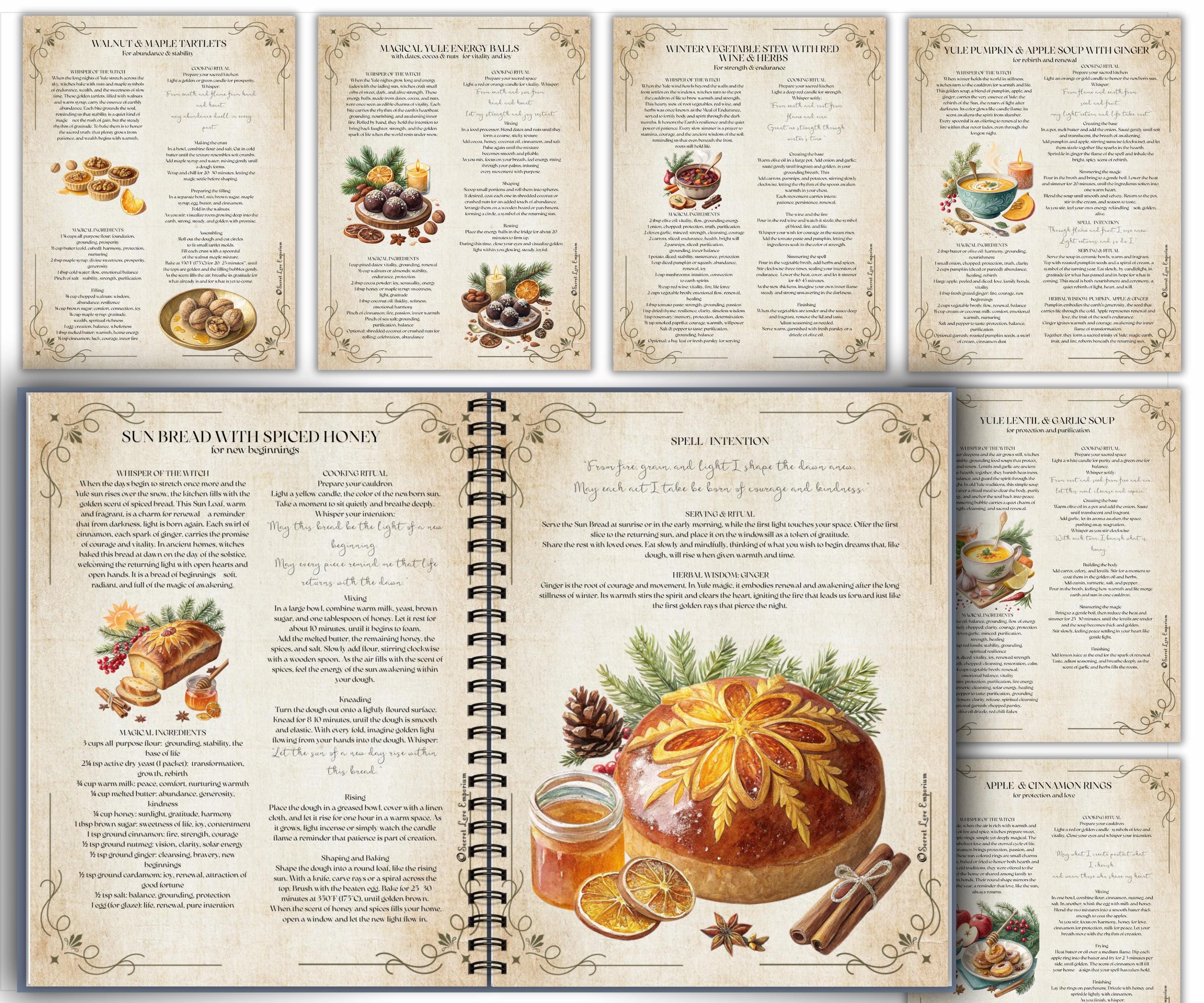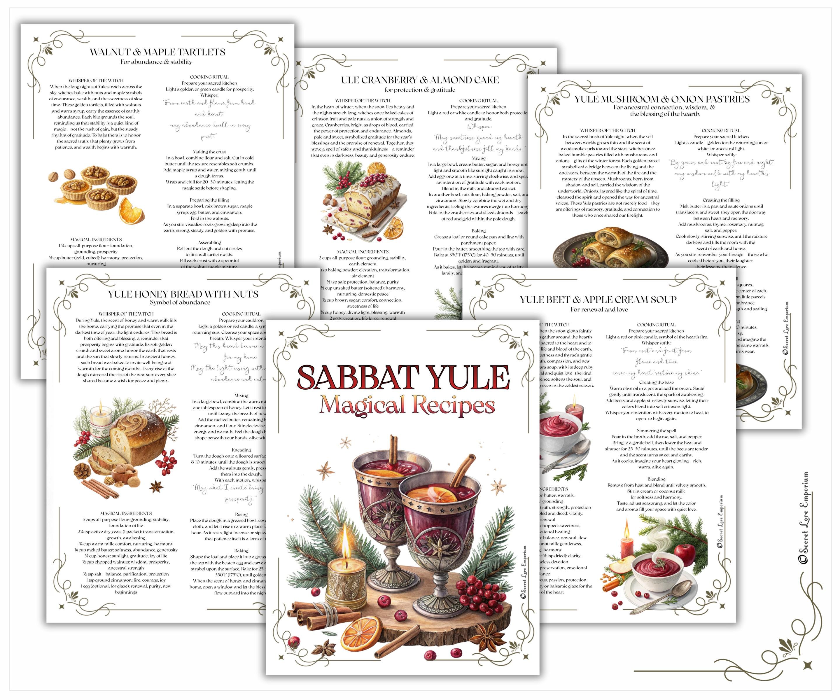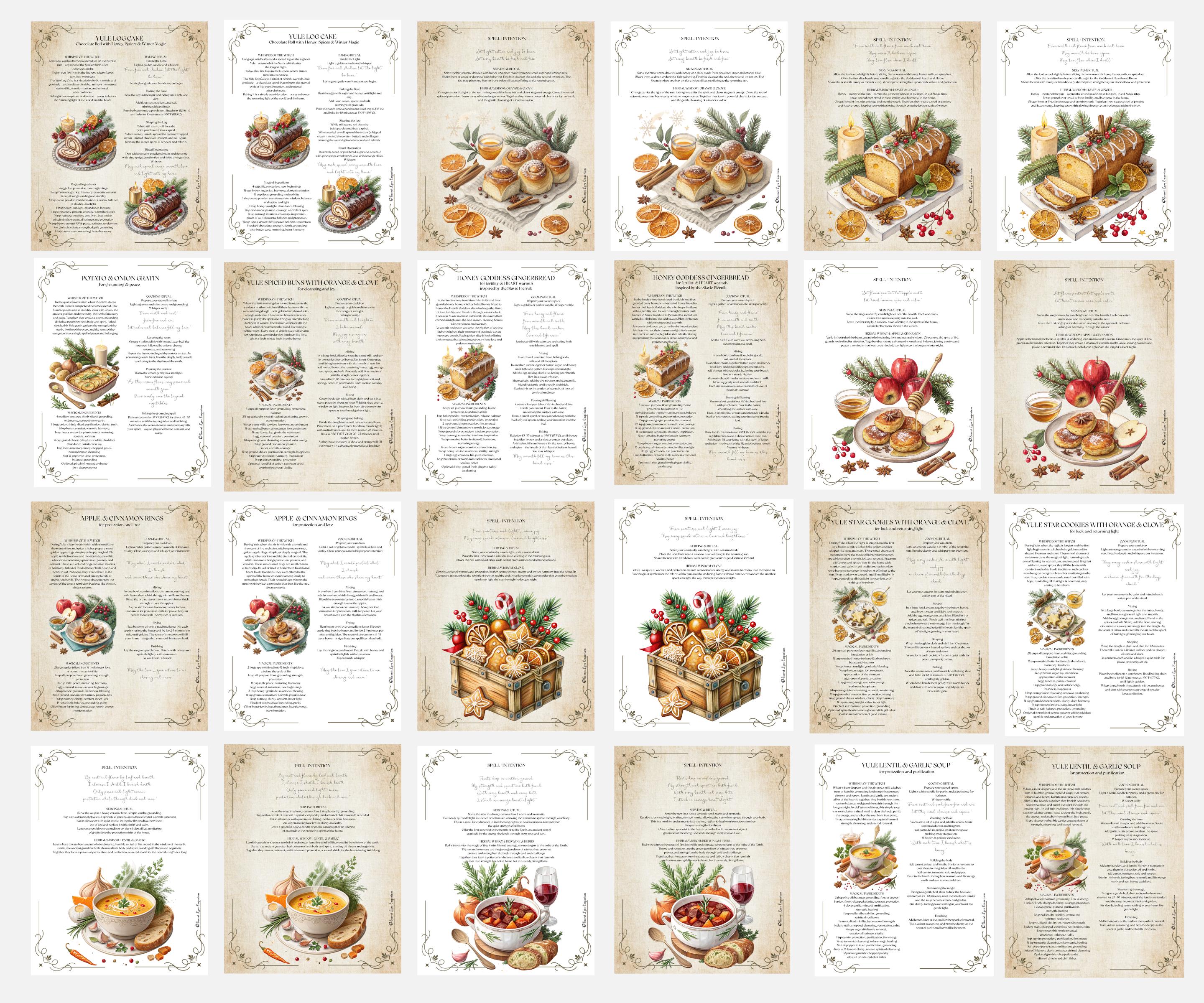 Celebrate the sacred light of Yule with this enchanting collection of 61 magical recipes inspired by the Winter Solstice ๐๐ฅ. Perfect for modern witches, kitchen witches, and spiritual souls who love to honor the sabbats through food, ritual, and gratitude. This beautifully designed A4 printable cookbook brings the warmth, symbolism, and seasonal energy of Yule right to your altar and kitchen.