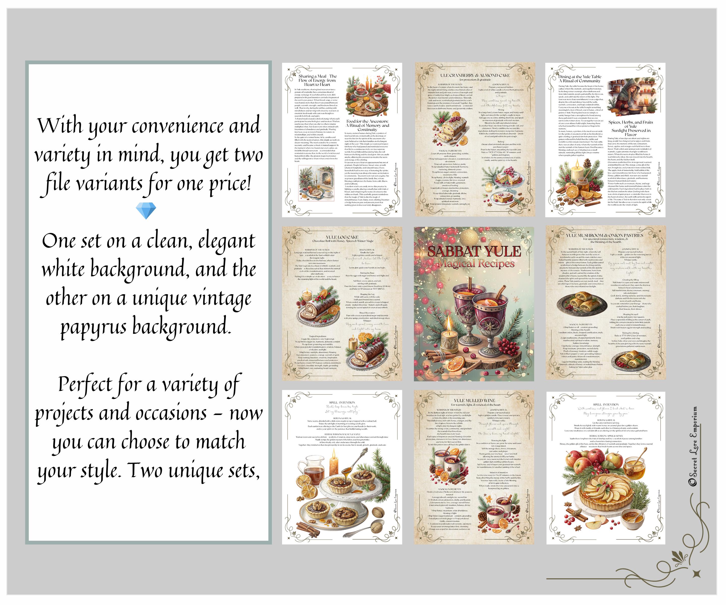 โจ 61 magical Yule recipes (sweet & savory) ๐จ Two background versions: โ Clean white paper โ Warm kraft parchment texture ๐ 3 unique cover designs: โ Full color โ Kraft paper version โ White minimalist edition ๐ A4 high-resolution printable PDF (61 pages) ๐ Easy to print at home or at your local print shop