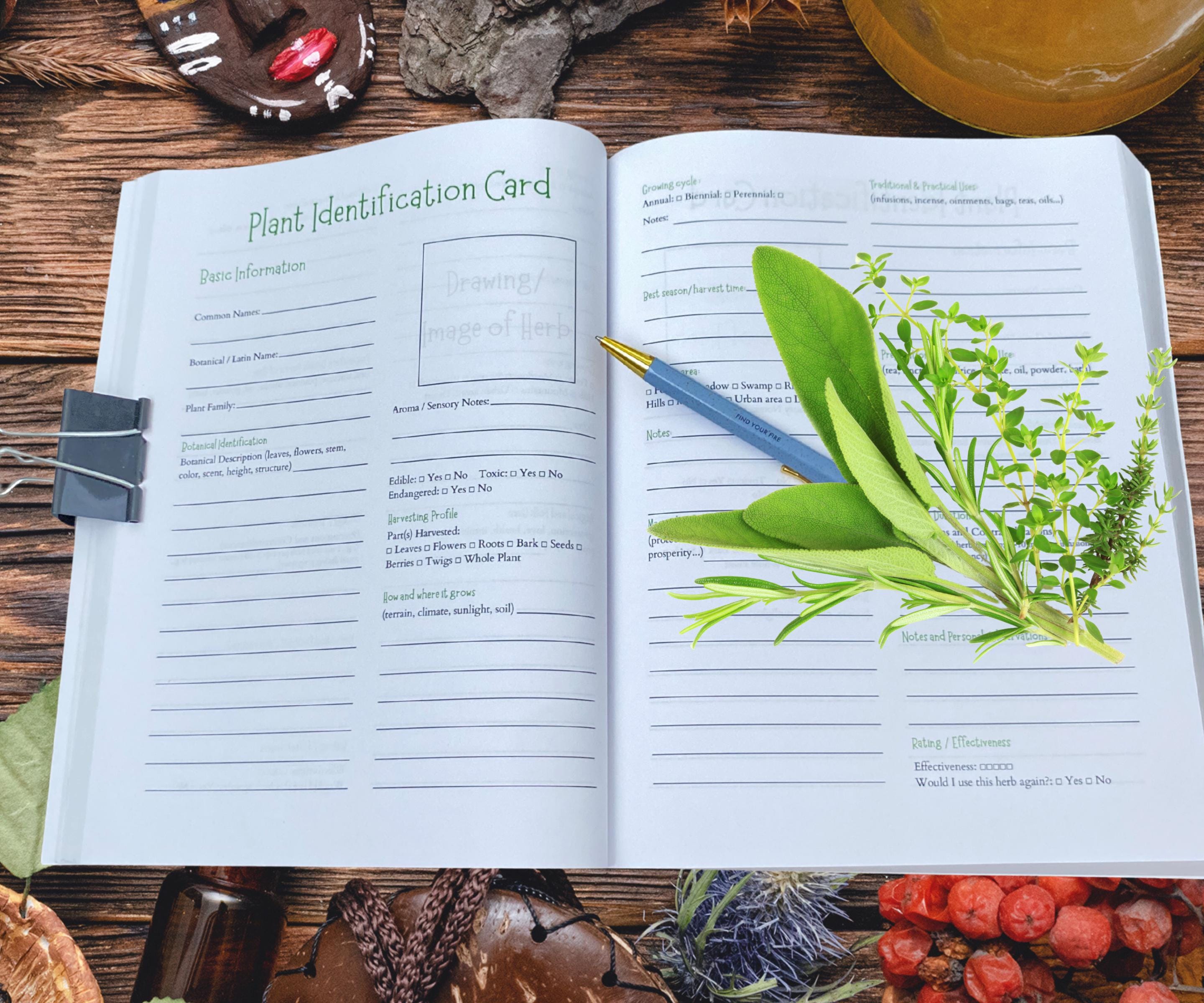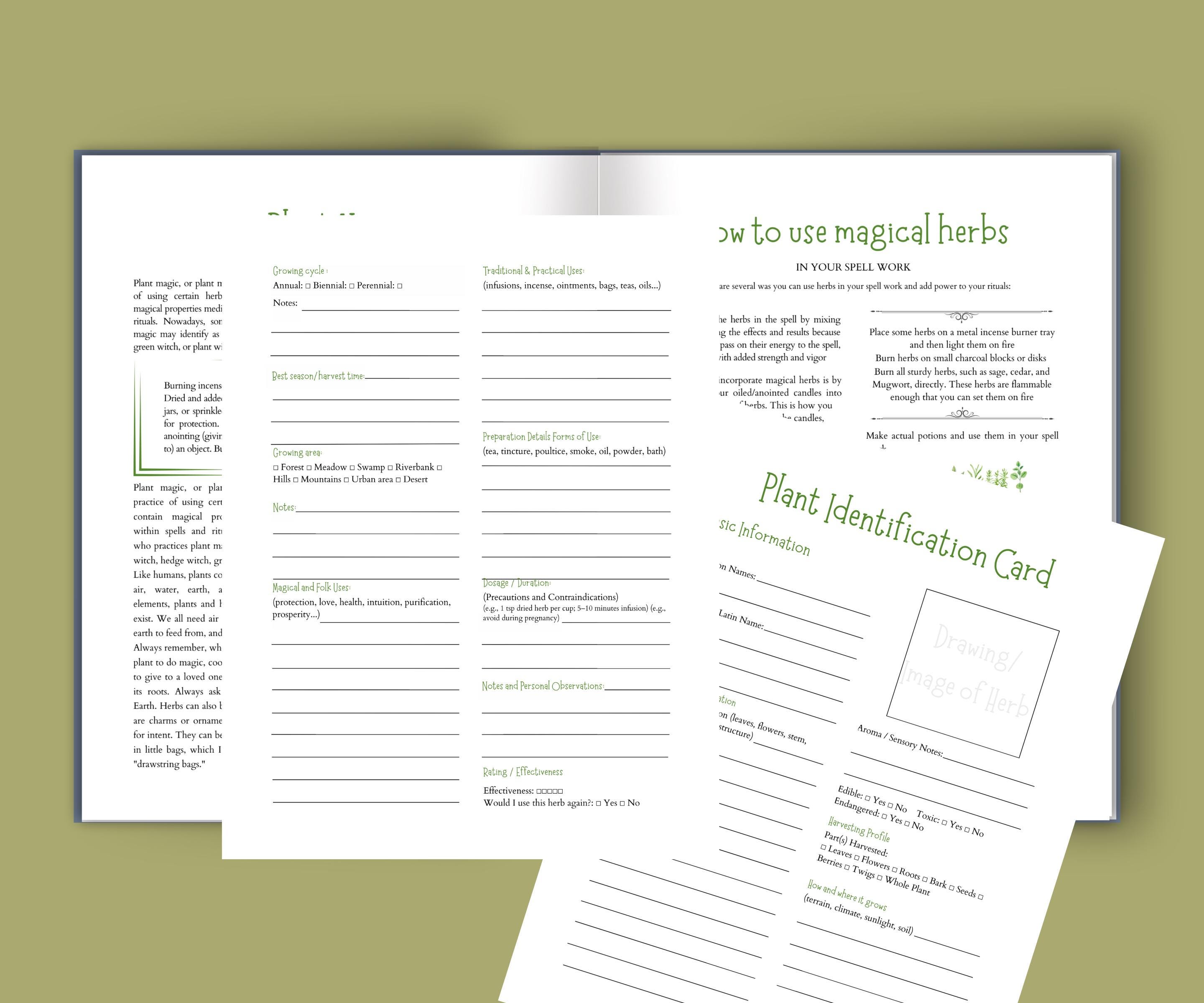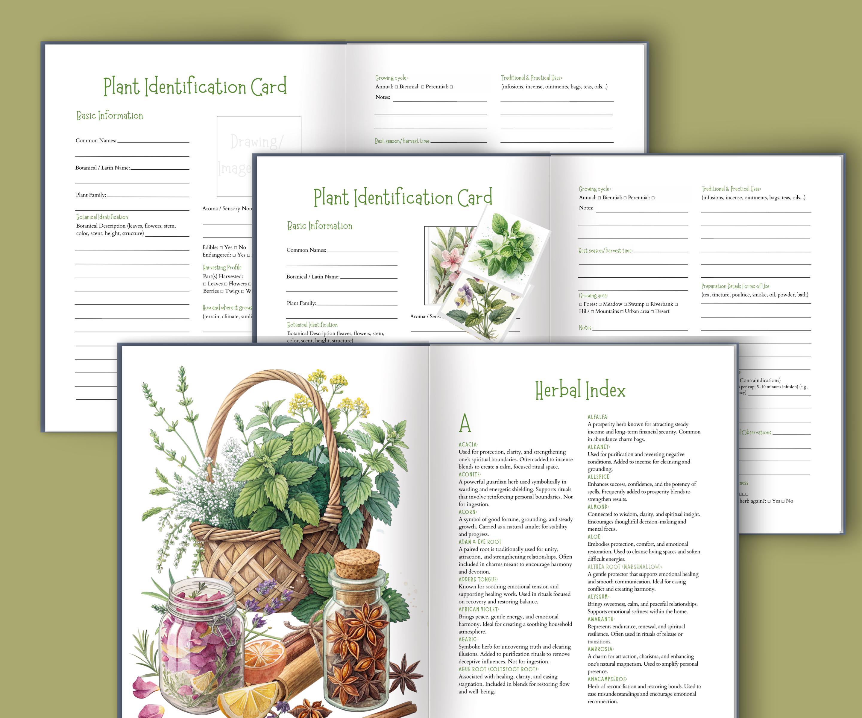 Use it as a daily herbal grimoire, learning journal, spell-book for teas and baths, plant reference, or field notebook — all in one.