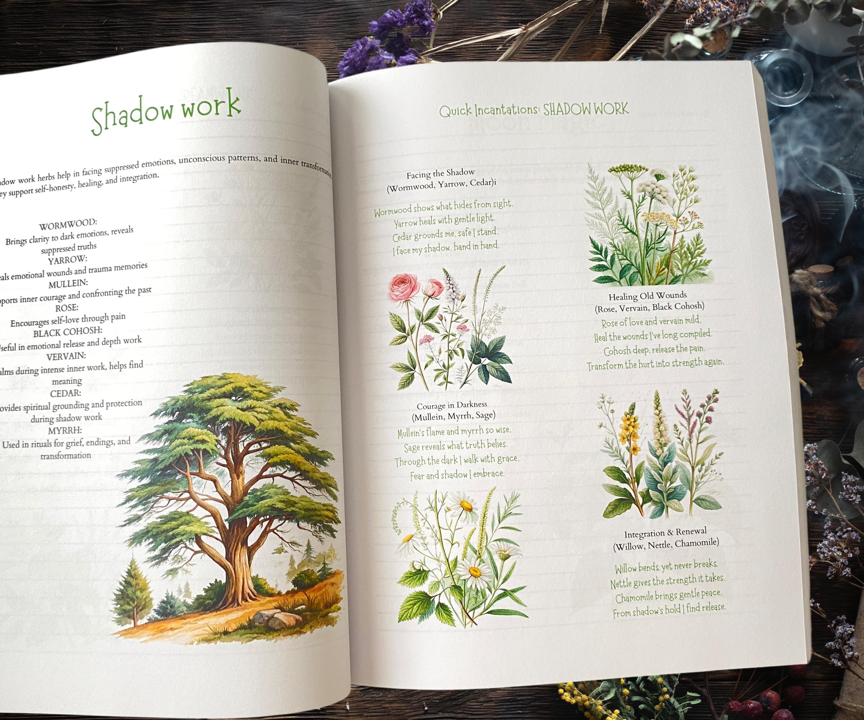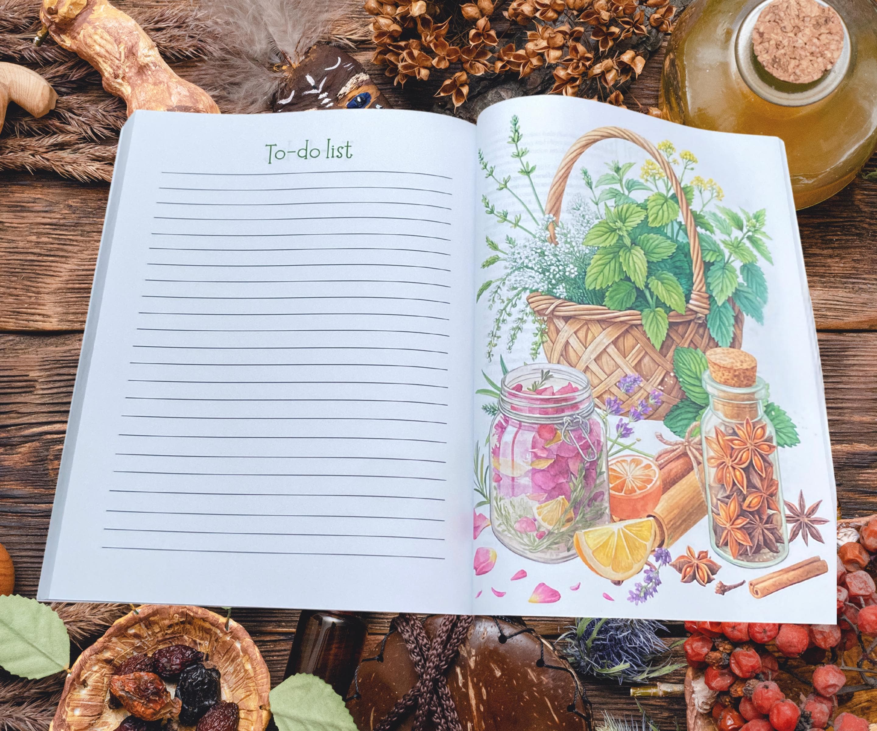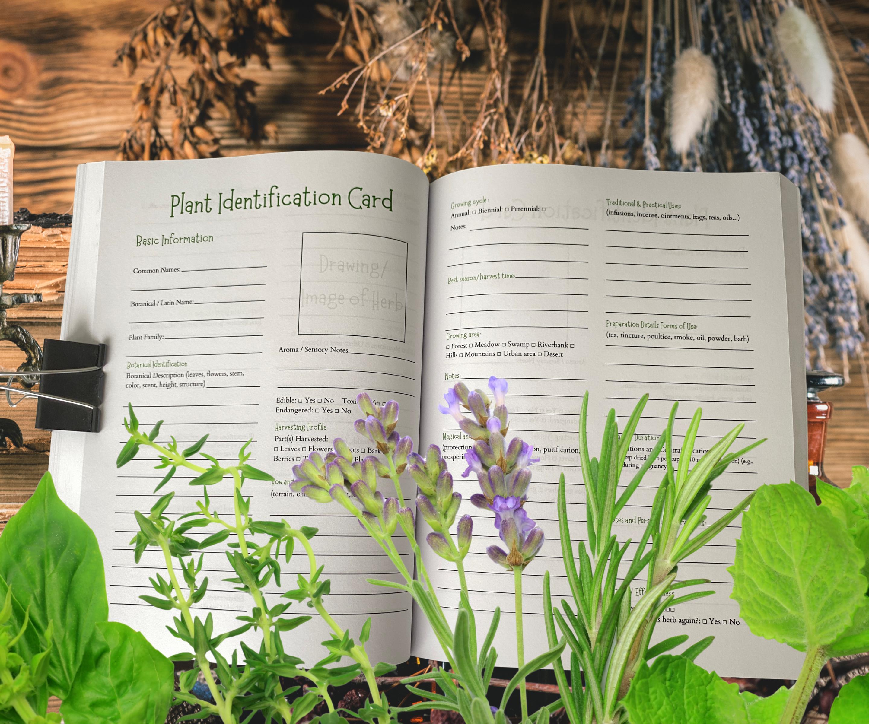 Use it as a daily herbal grimoire, learning journal, spell-book for teas and baths, plant reference, or field notebook — all in one.